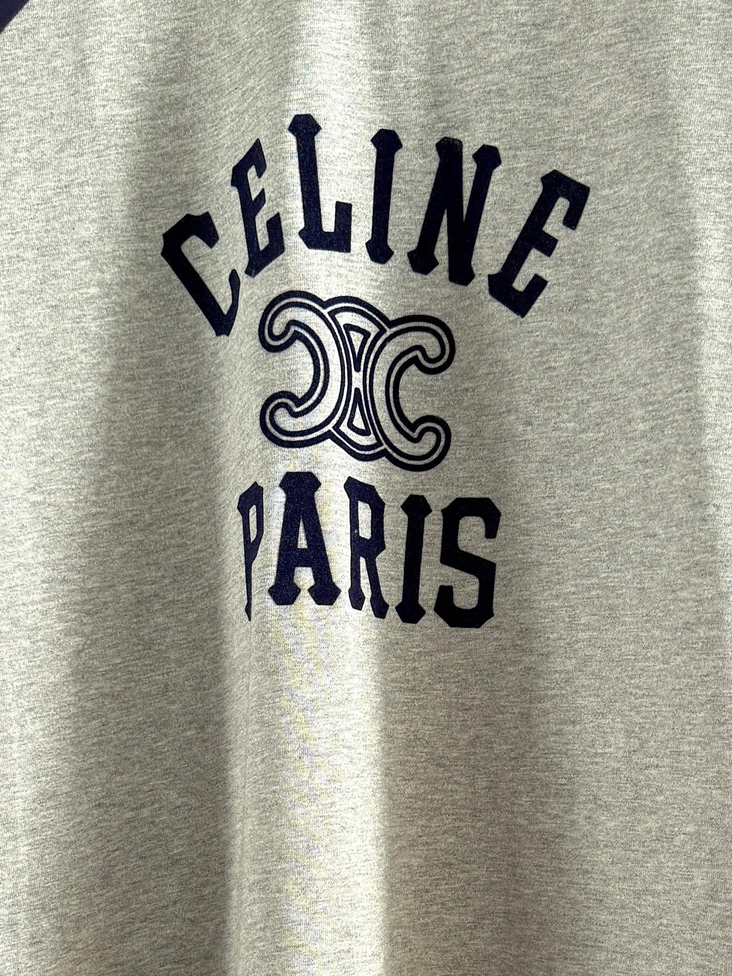 Celine 25 Flocked T-shirt Gray mix Navy Blue Cotton