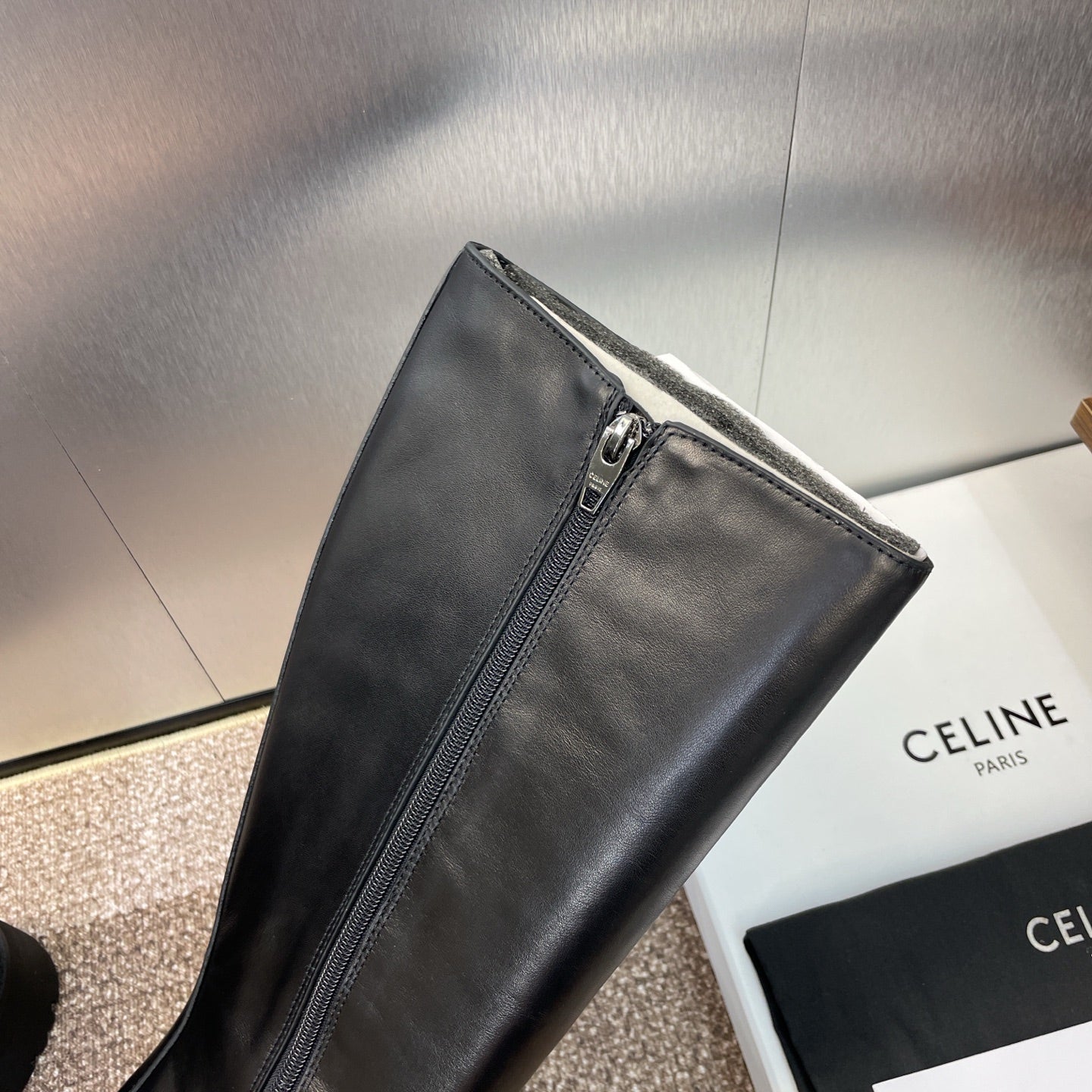 CELINE 25 high boots with locks black calfskin 433393