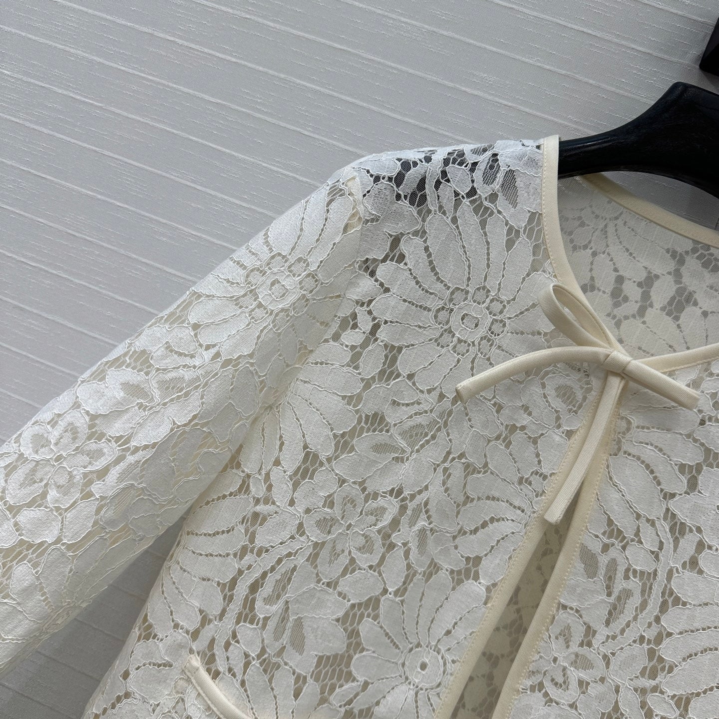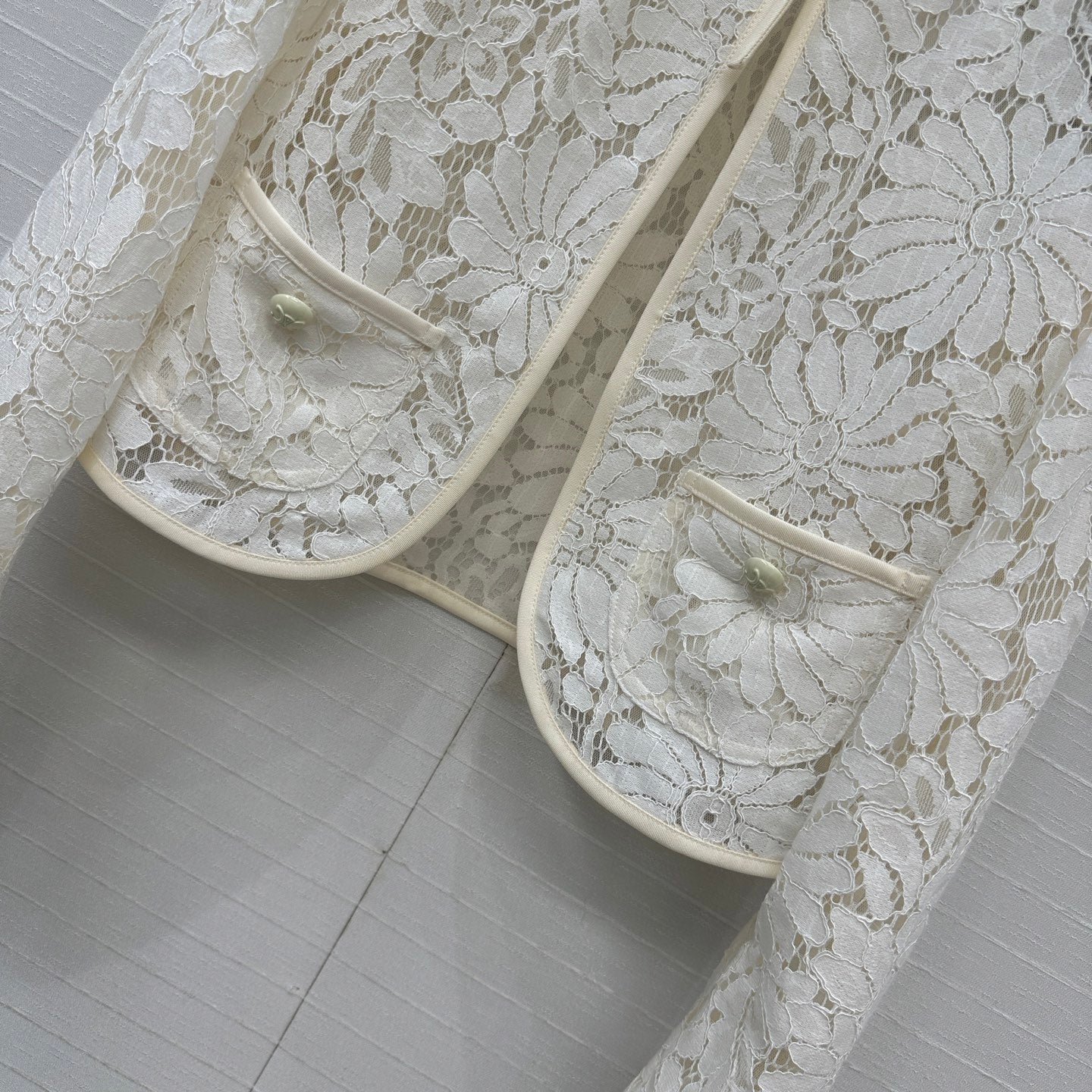 Celine 25 Lace Embroidered Cardigan Jacket White polyester