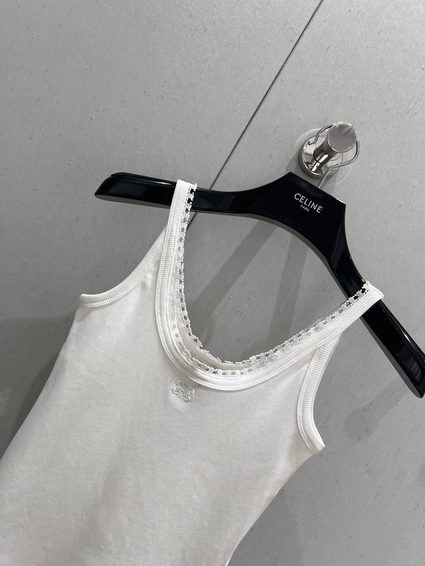 Celine 25 Lace Vest Camisole White Cotton Silk 215160