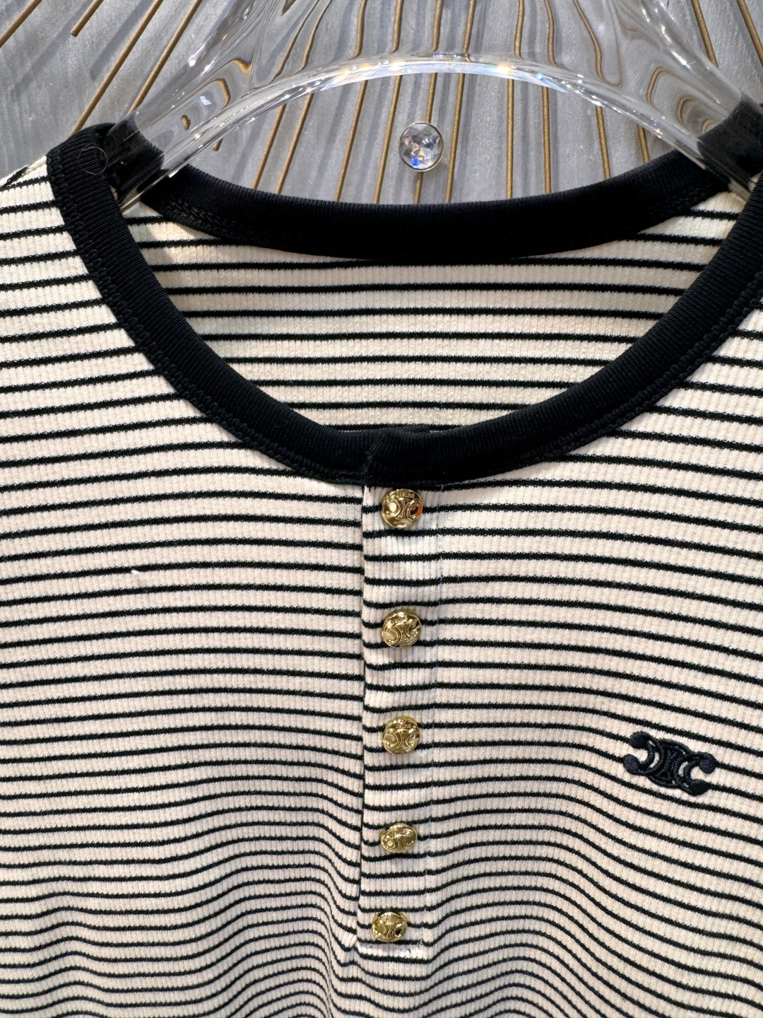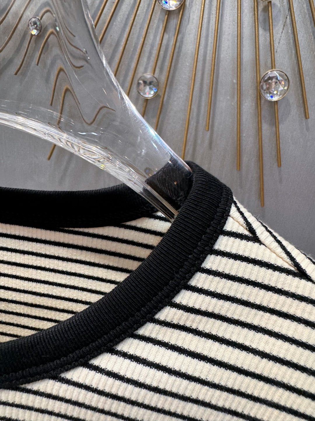 Celine 25 Striped Knitted Long-sleeved T-shirt White Black Cotton