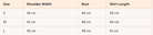 La anchura se mide de lado a lado, por debajo de las axilas, cuando la prenda está extendida.
