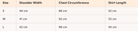 La anchura se mide de lado a lado, por debajo de las axilas, cuando la prenda está extendida.