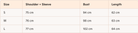 La longitud de las mangas se mide desde el hombro hasta el final de la muñeca.