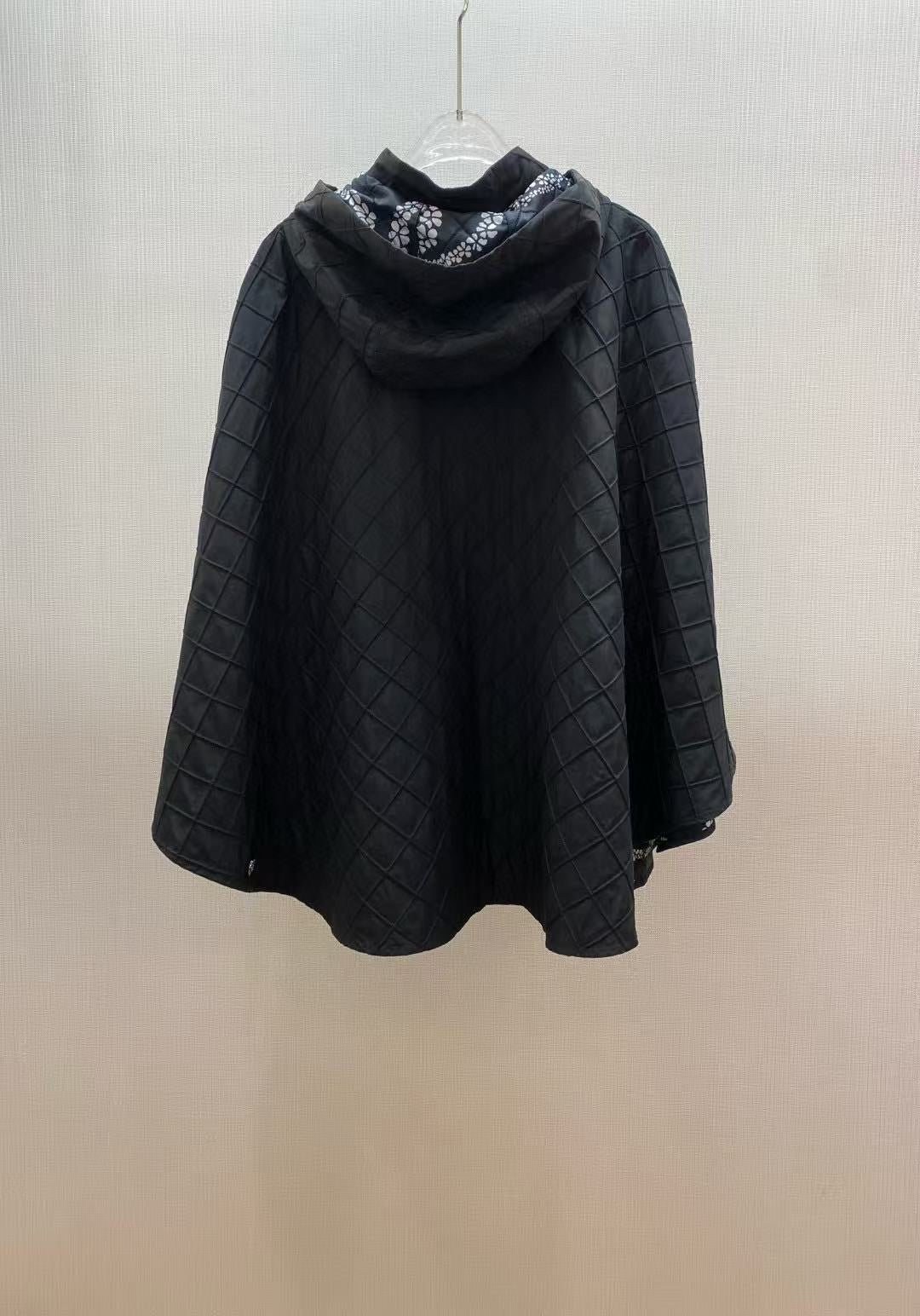 Chanel 25S Cape Coat Style 220 Black Silk Polyester