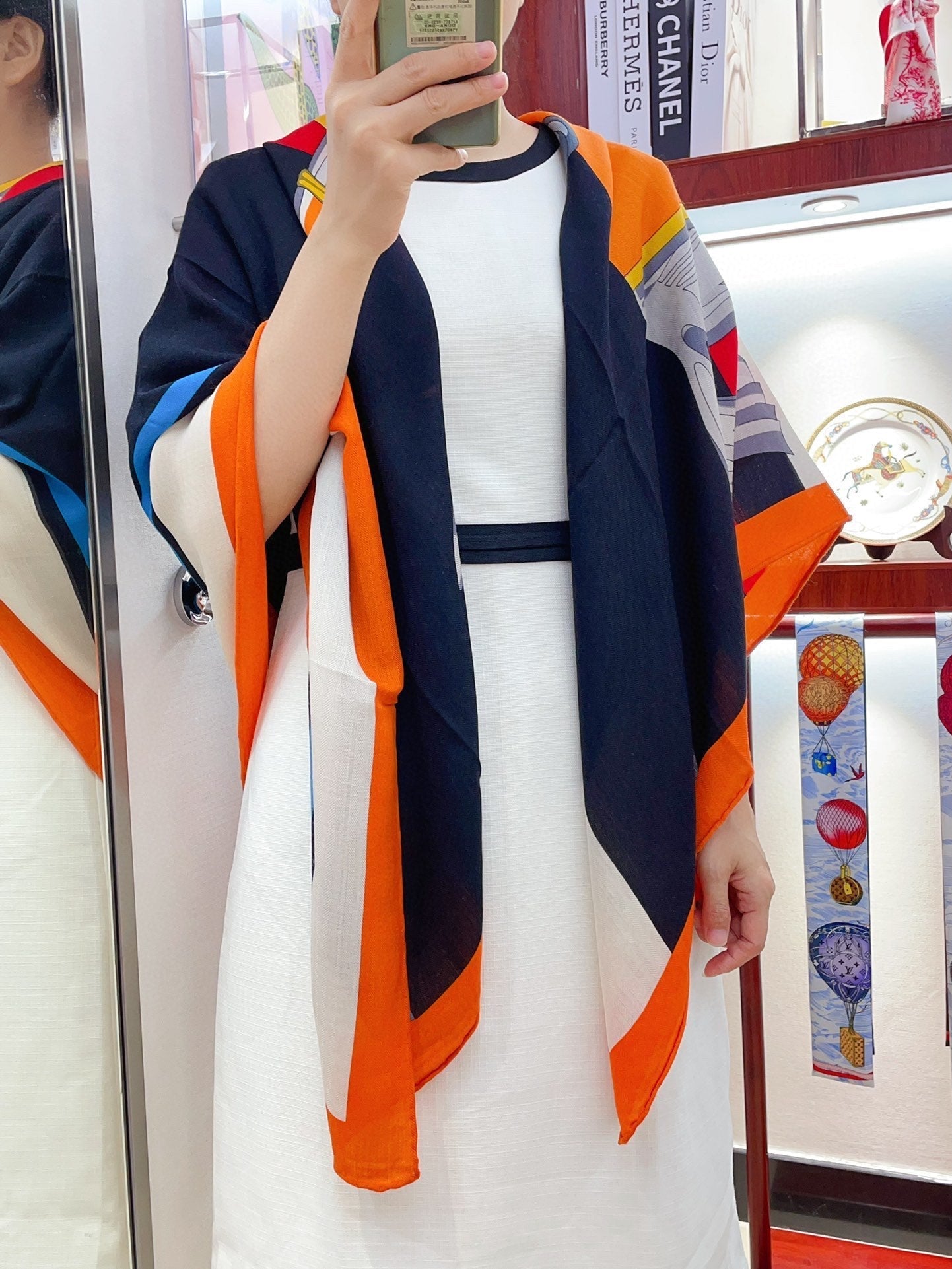 Cheval a la Couverture Scarf 140 CM In Black Colorful Cashmere And Silk 344367