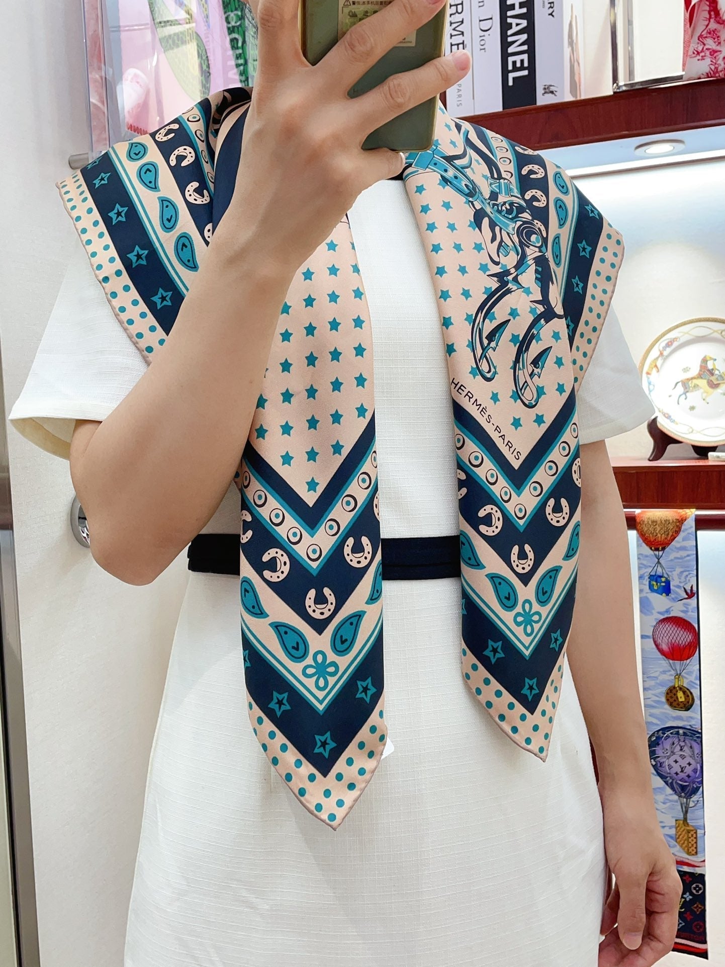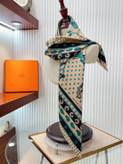 Cheval Punk Bandana Scarf 90 CM In Beige Mix Black Deep Green Silk Twill 309211