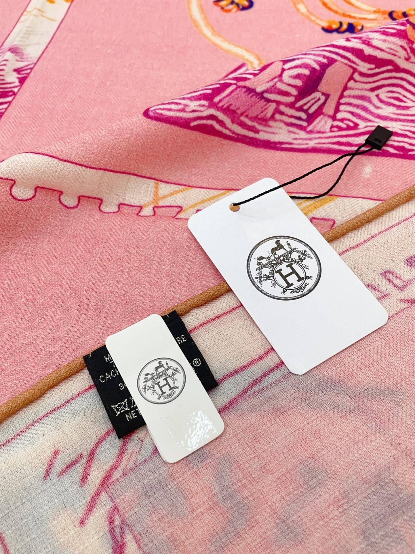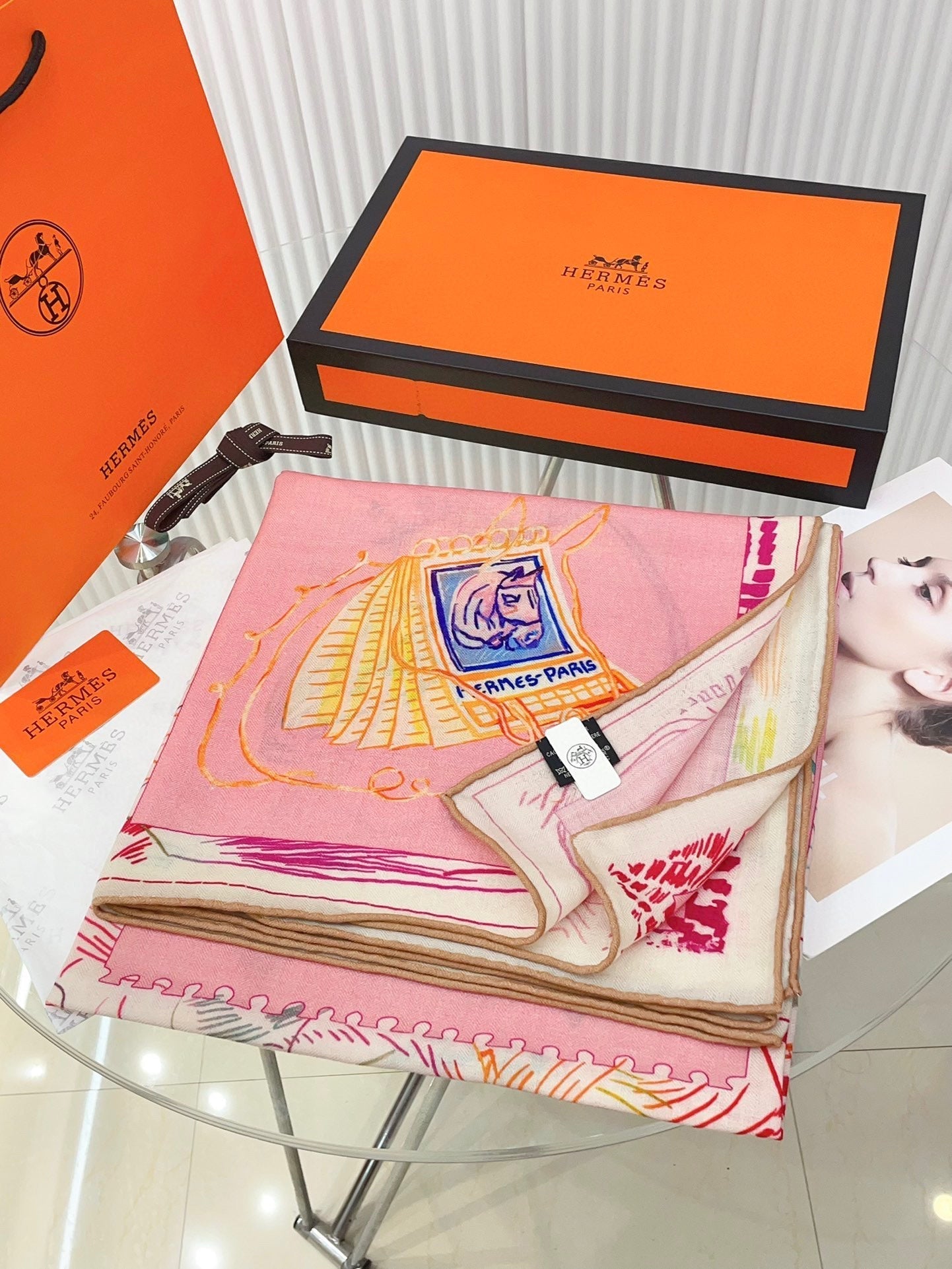 Chevaloscope Scarf 140 CM In Pink Colorful Cashmere And Silk 373660