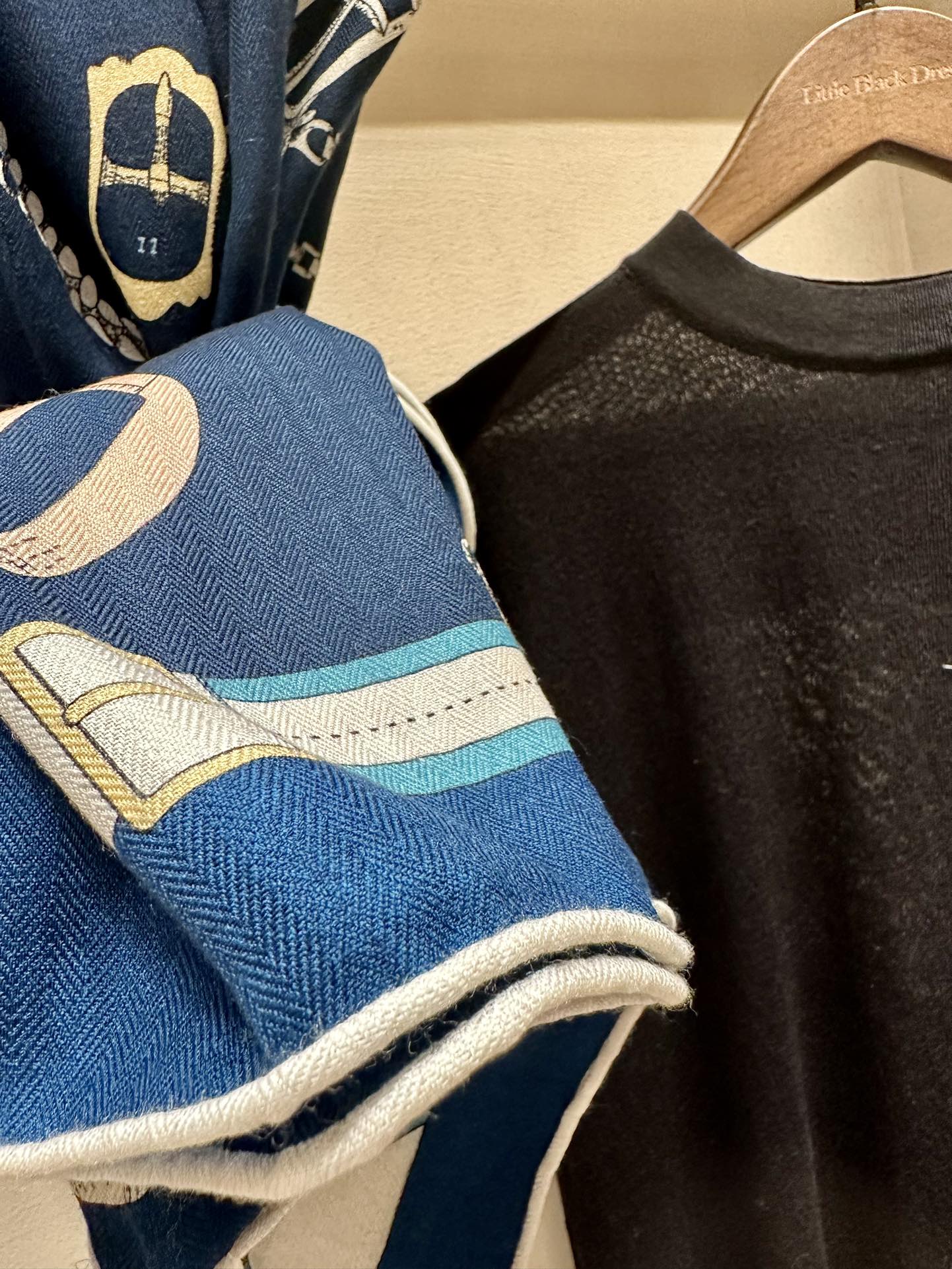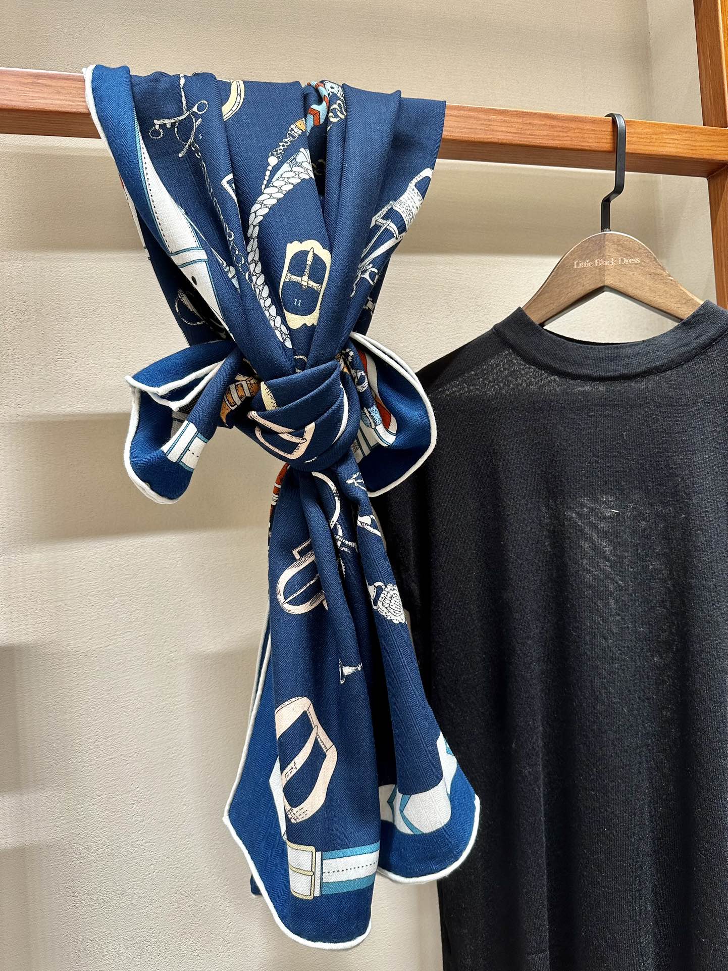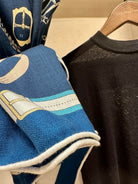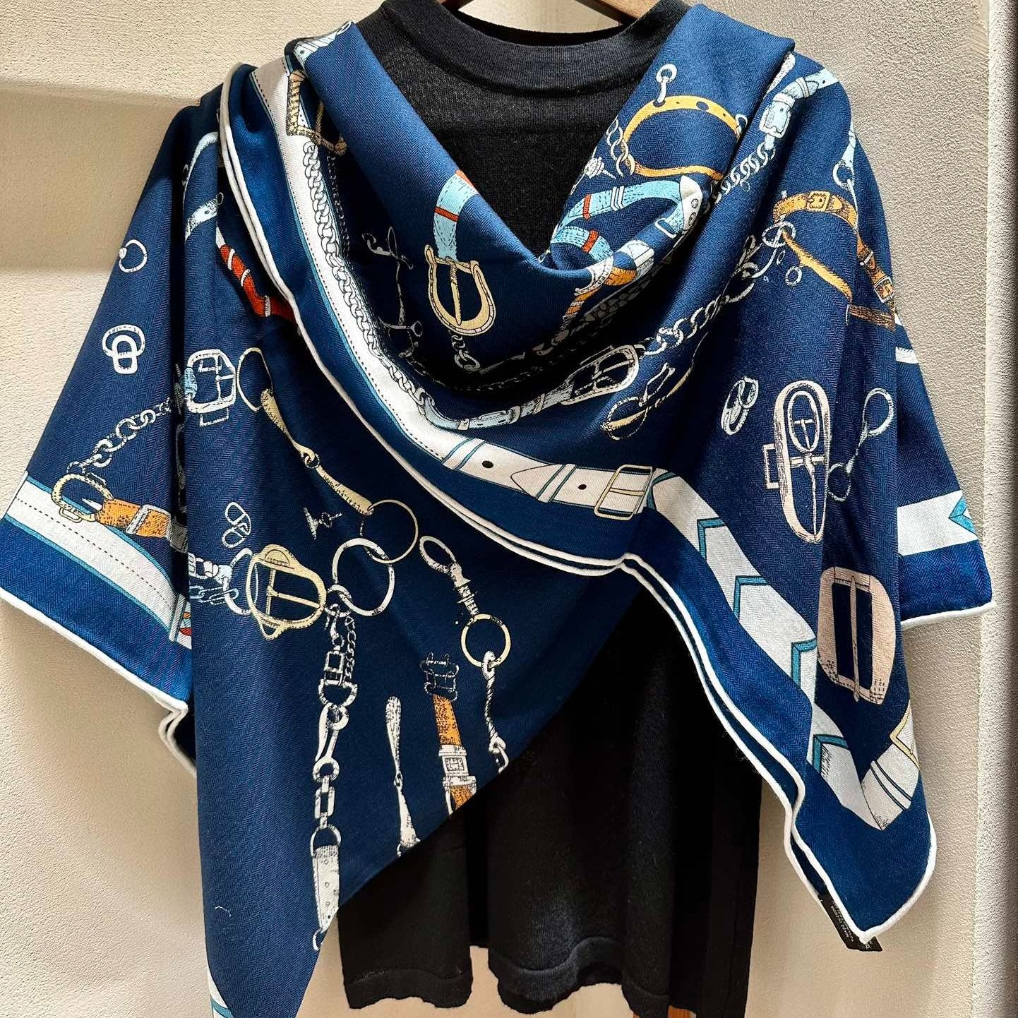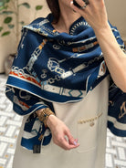 Chevaux Dechaines Shawl 135 CM IN Dark Blue Colorful Cashmere Silk 373682