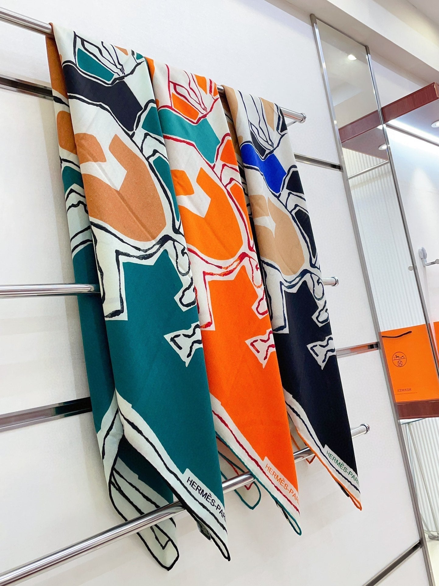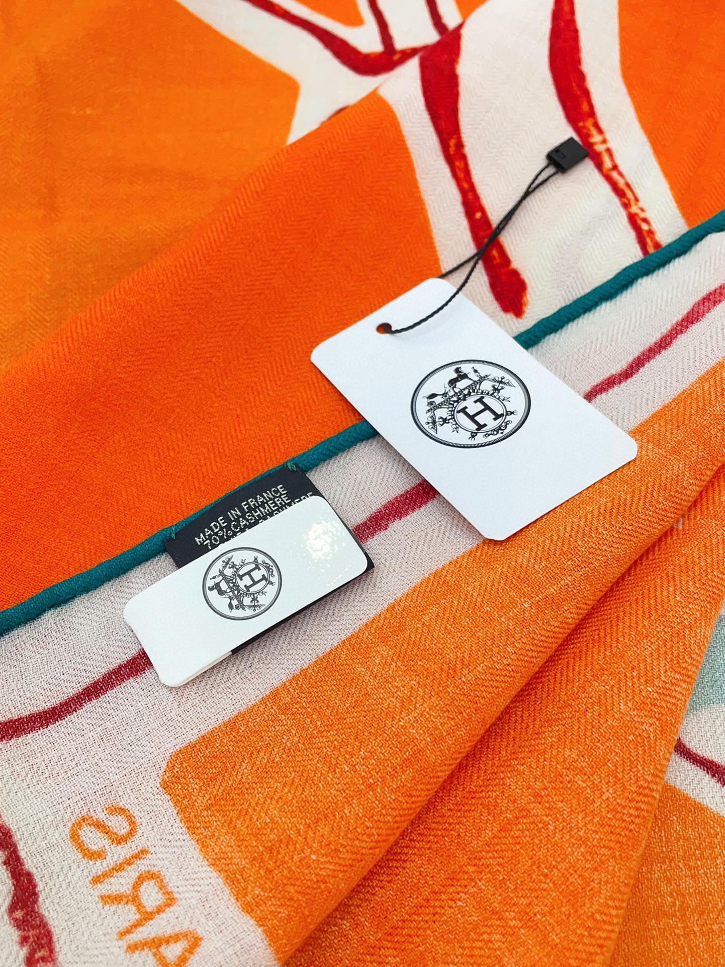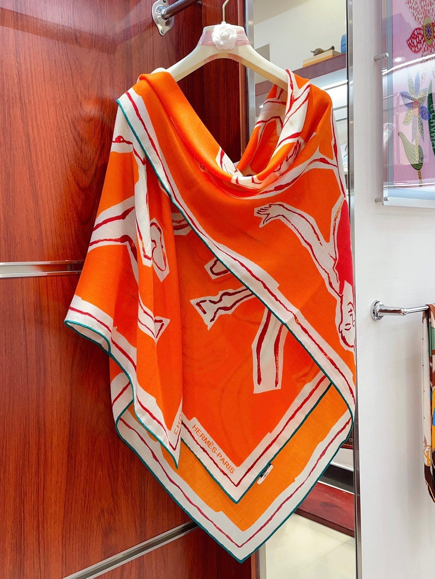 Choregraphie Equestre Scarf 140 CM Orange Colorful Cashmere And Silk 393170