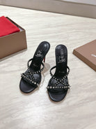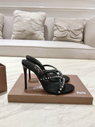 CL 25 Cross-Strap Slippers Black Gloss Calf Patent Leather Rivets 314925