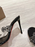 CL 25 Just Queen Sandals 10cm Black PVC Sheepskin 307525