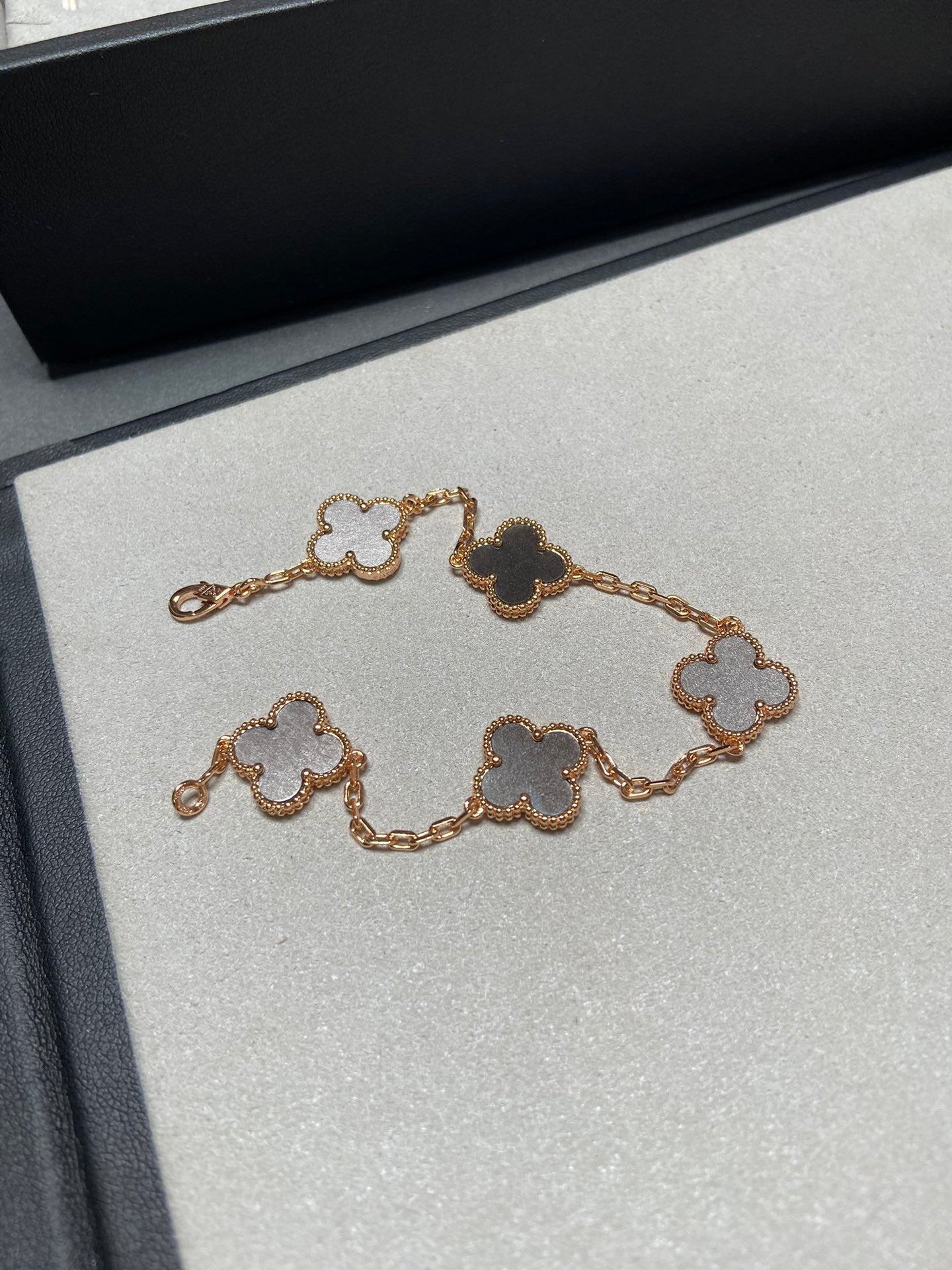 CLOVER 5 MOTIF GREY MOP PINK GOLD BRACELET
