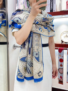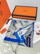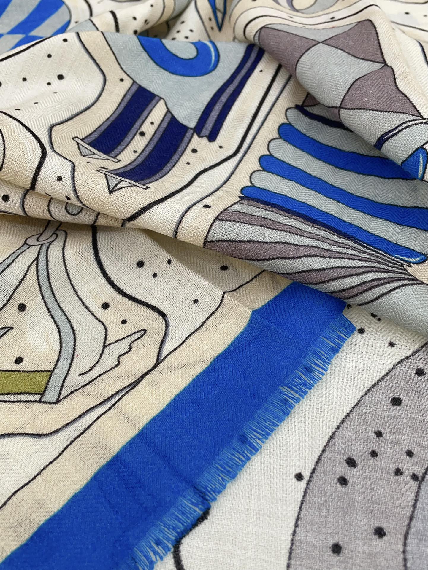 Cosmic Horse Set rectangle Scarf 180 CM In Blue Colorful Cashmere And Silk 308063