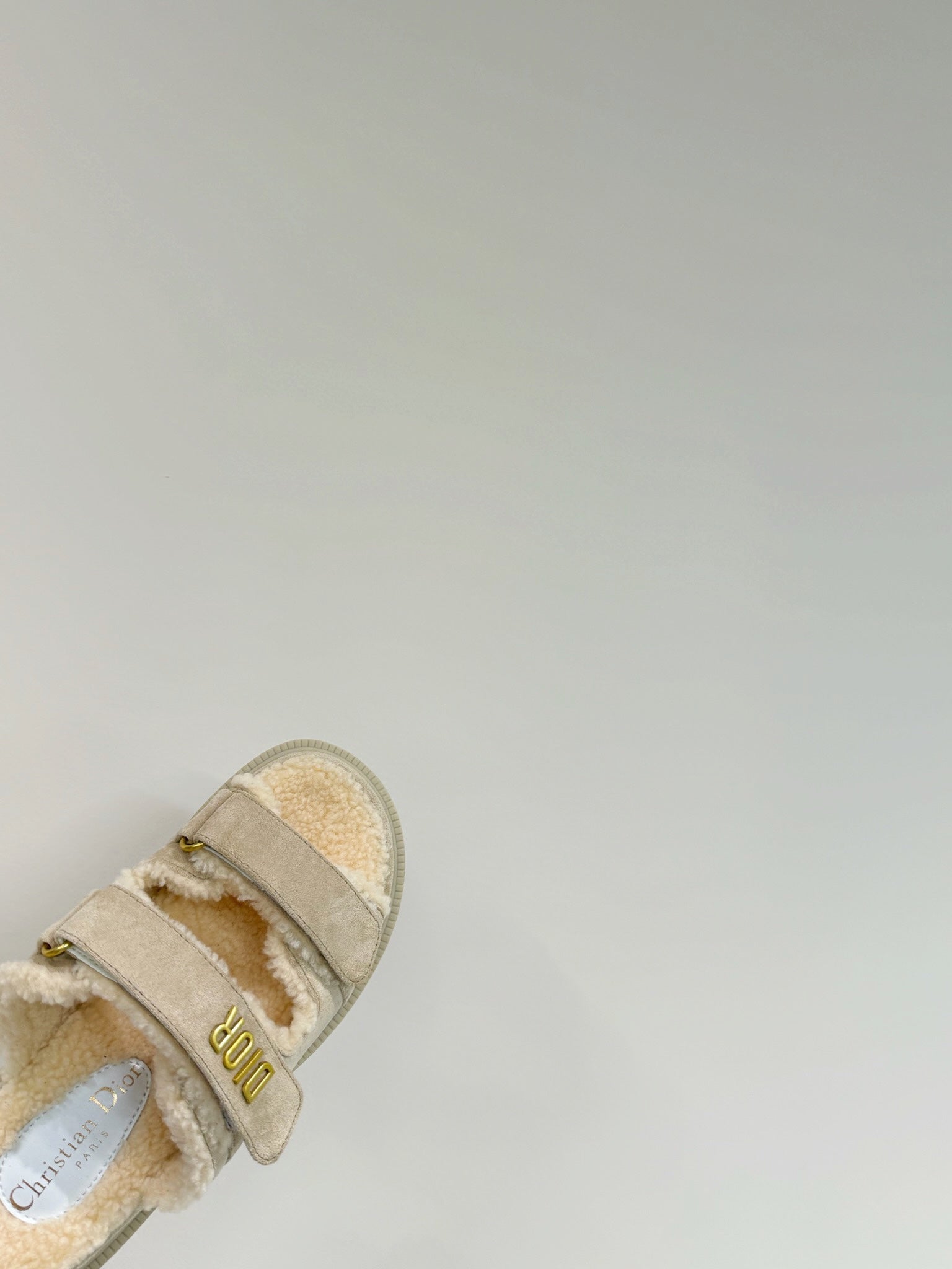 Dioract Slide In Light Grey Suede And Wool Fleece Lining 109879