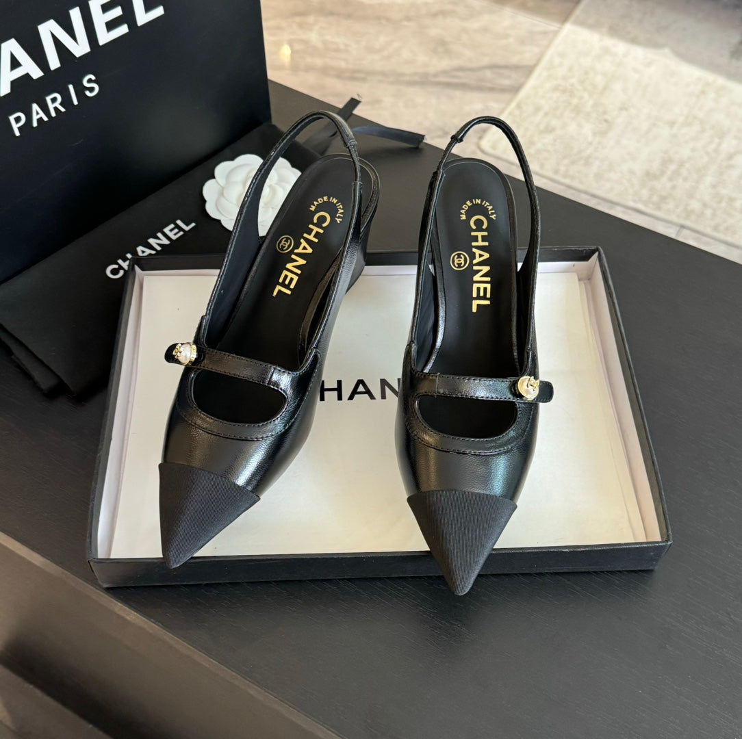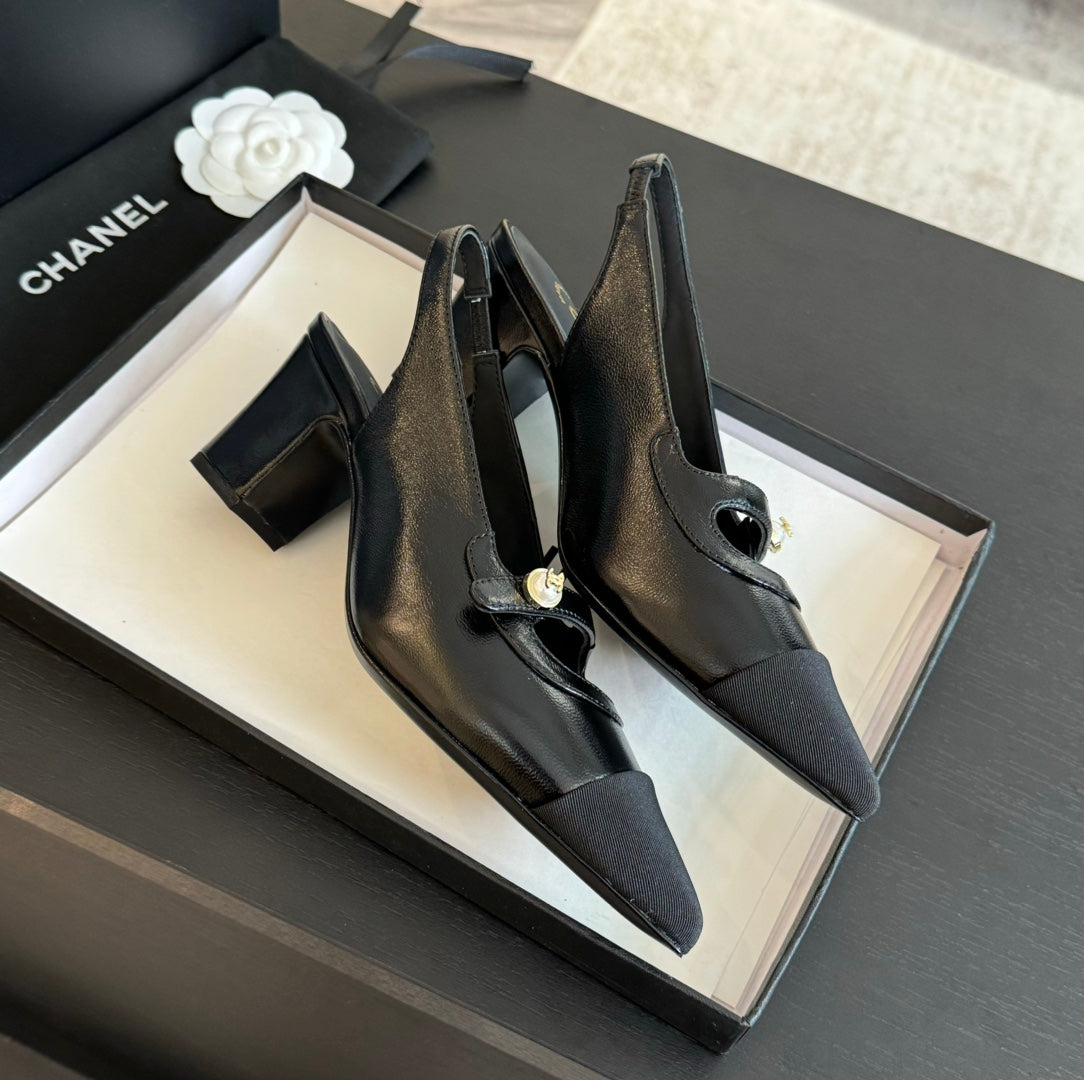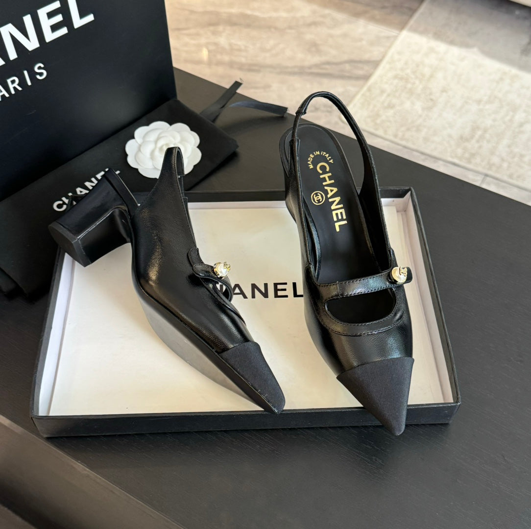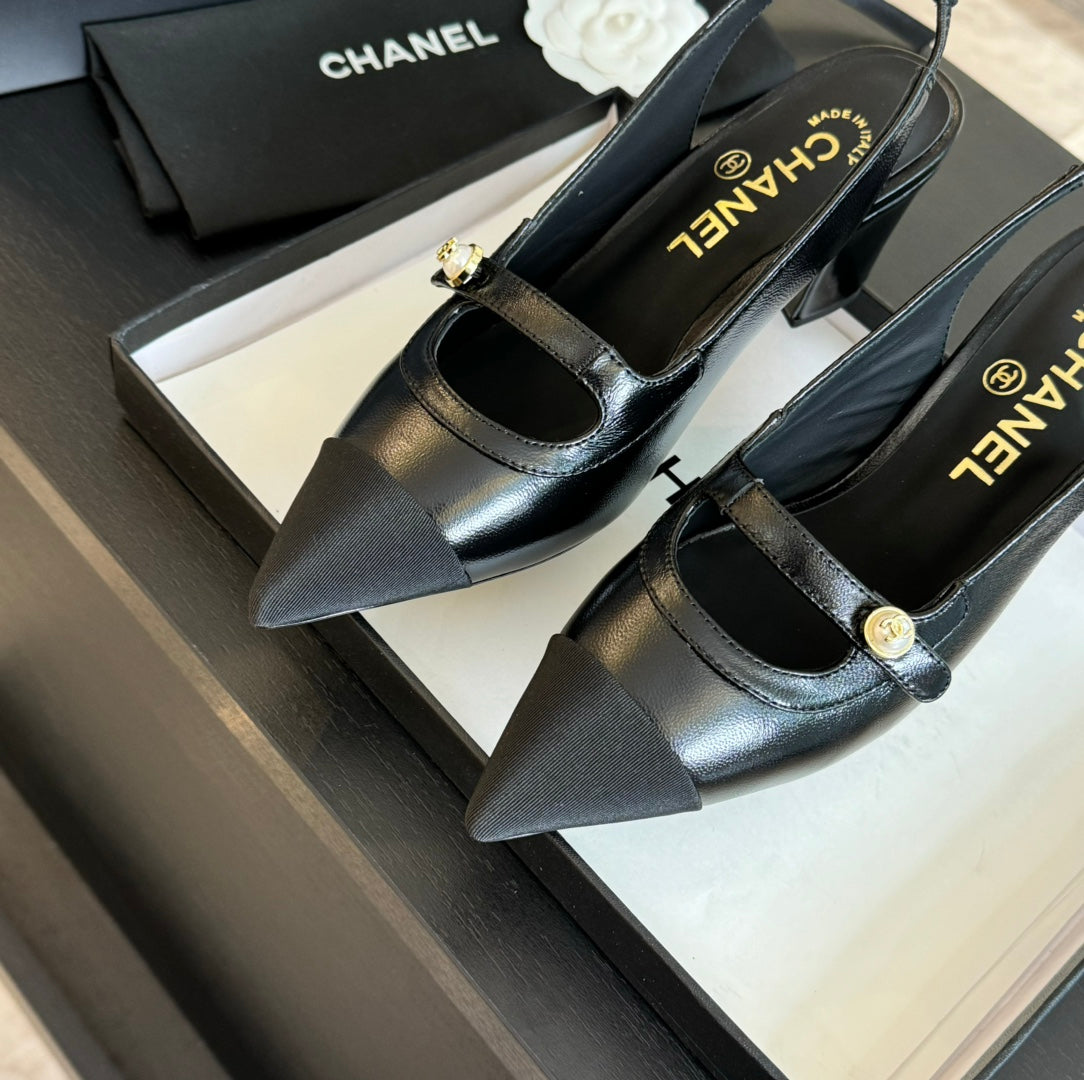 Double C WOMEN'S Slingback SPIRIT TOE Black Lambskin