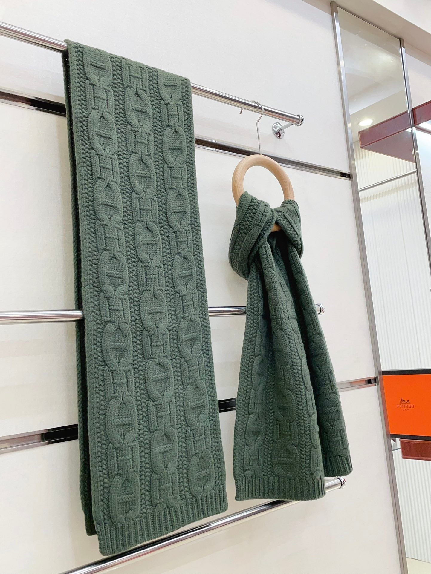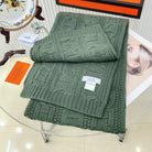 Faubourg Muffler Scarf 170 CM Khaki Green Cashmere Handwoven 356203