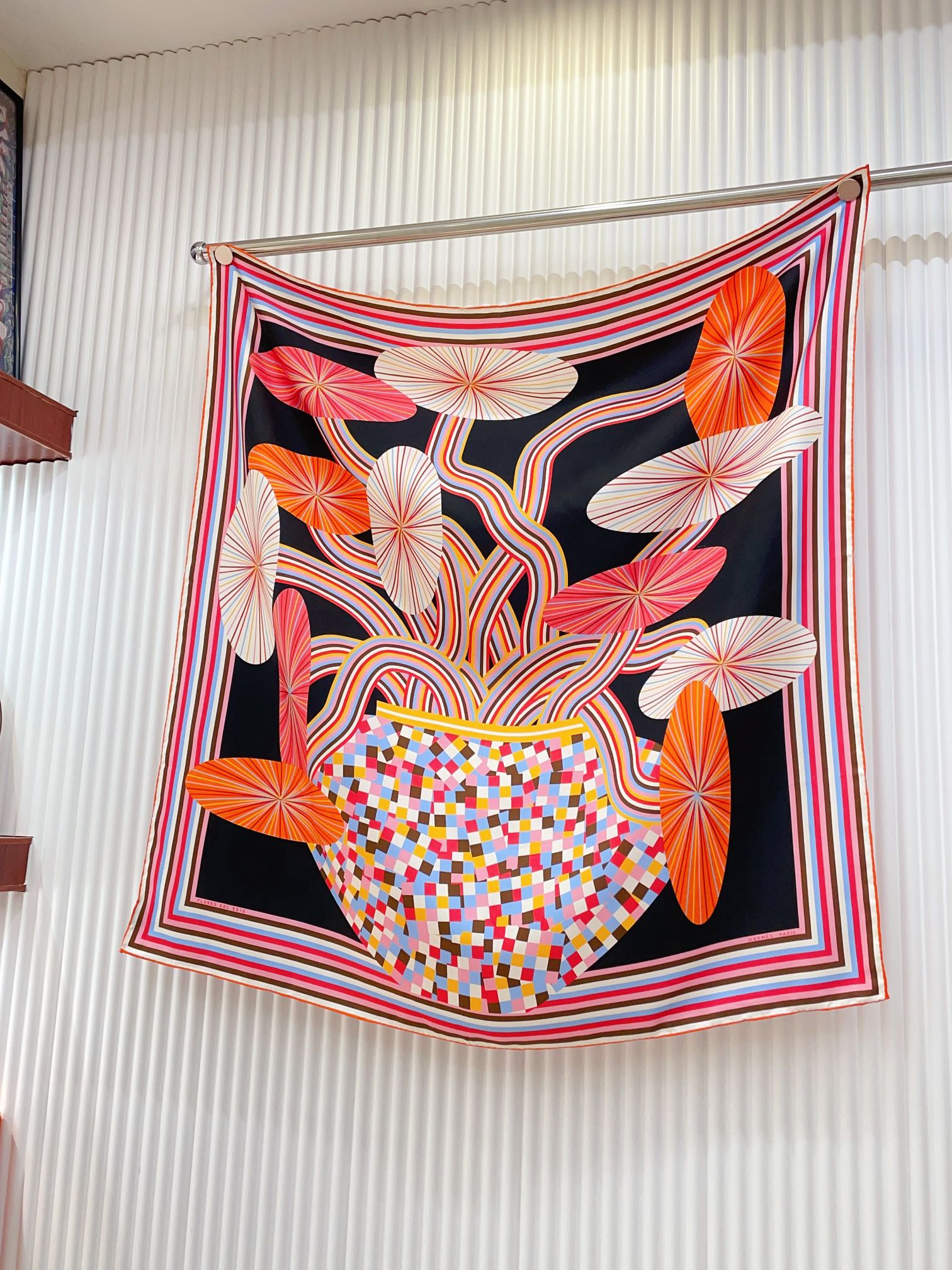 Flores Del Este Scarf 90 CM Black Colorful Silk Twill 310313