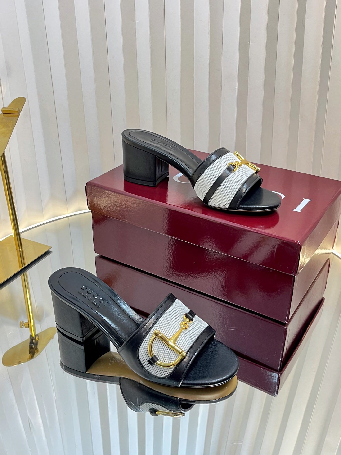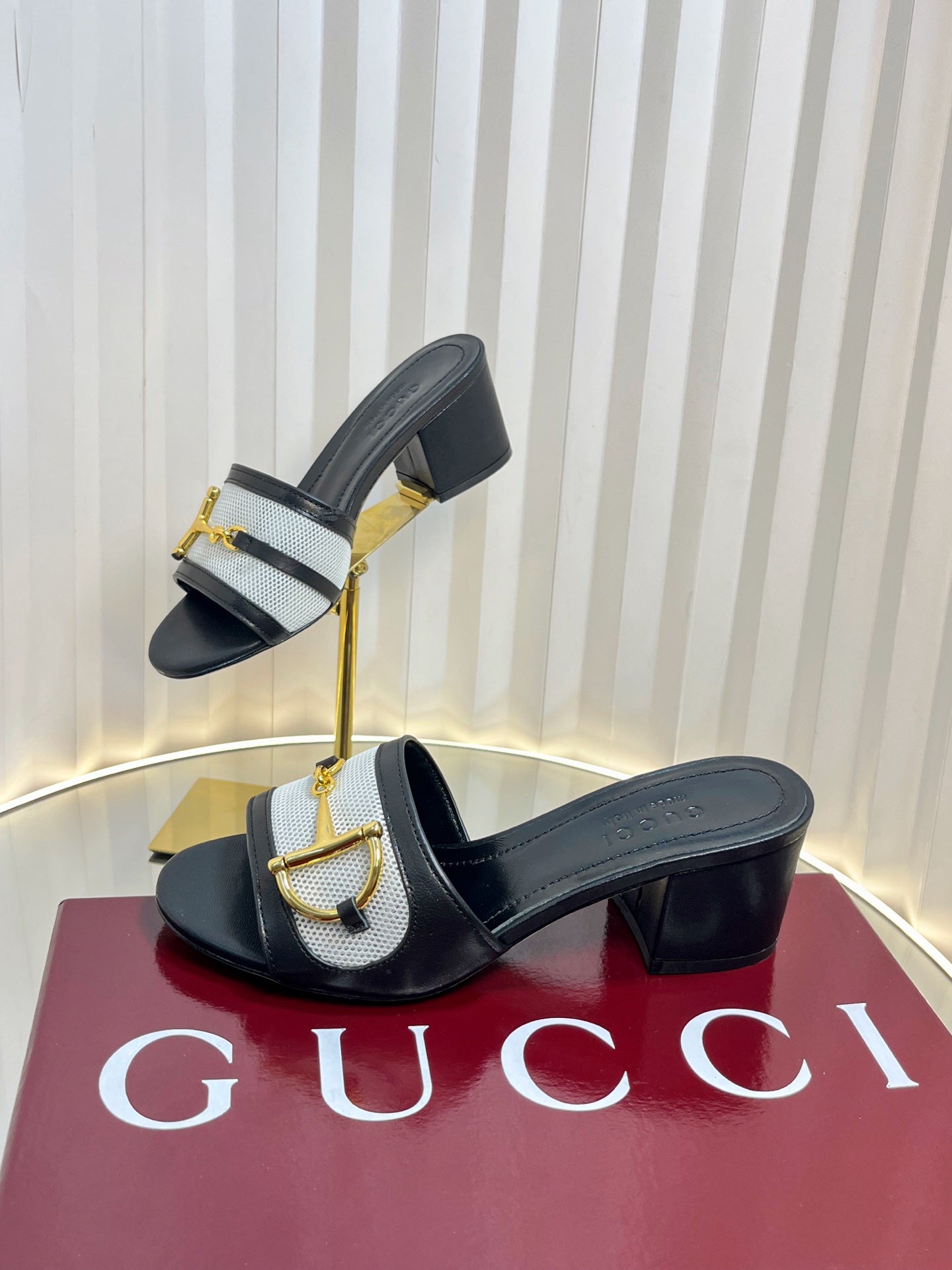 GC 25 Horsebit GG 50mm Sandals black Canvas Sheepskin 294668