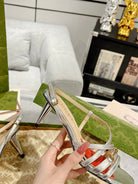 GG CLASSIC STRAPPY HEEL SANDAL SILVER CALFSKIN