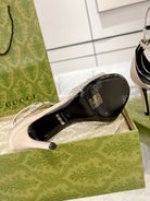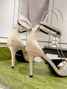 GG CRYSTAL CREAM HIGH HEEL SANDALS SATIN