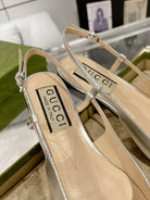 GG CRYSTALS SLINGBACK BALLET SILVER CALFSKIN