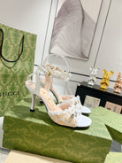GG HIGH - HEEL SANDAL WHITE FABRIC ATTACH BOW