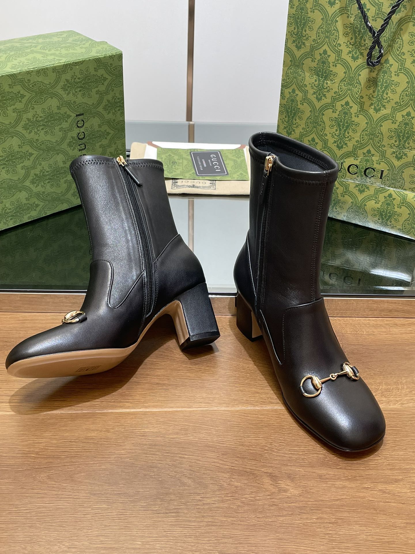 GG Horsebit Ankle Boot 65 Black Calfskin