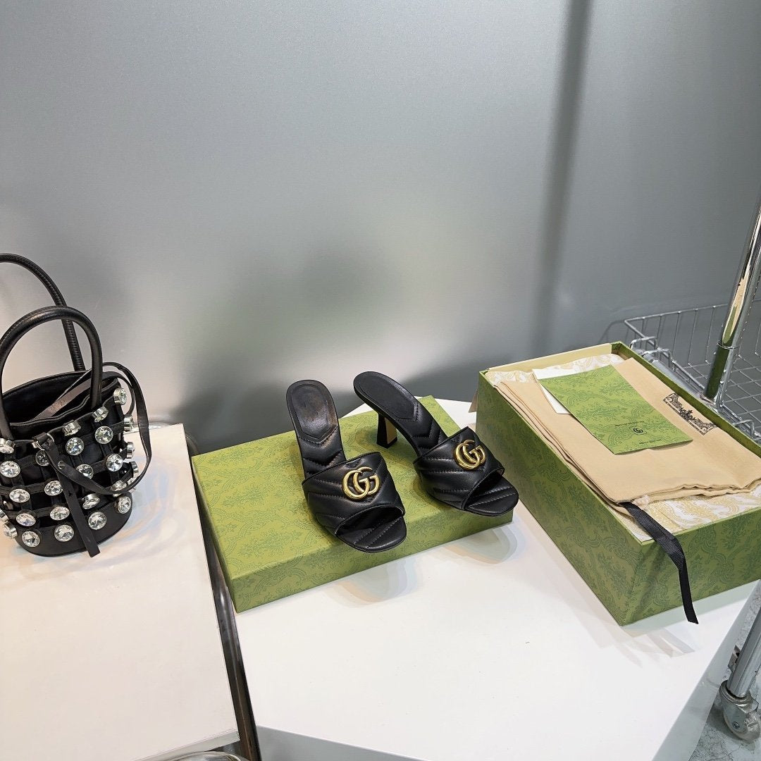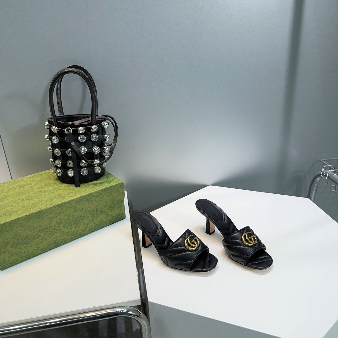 • High-end new embroidered classic G buckle high-heeled sandals.
