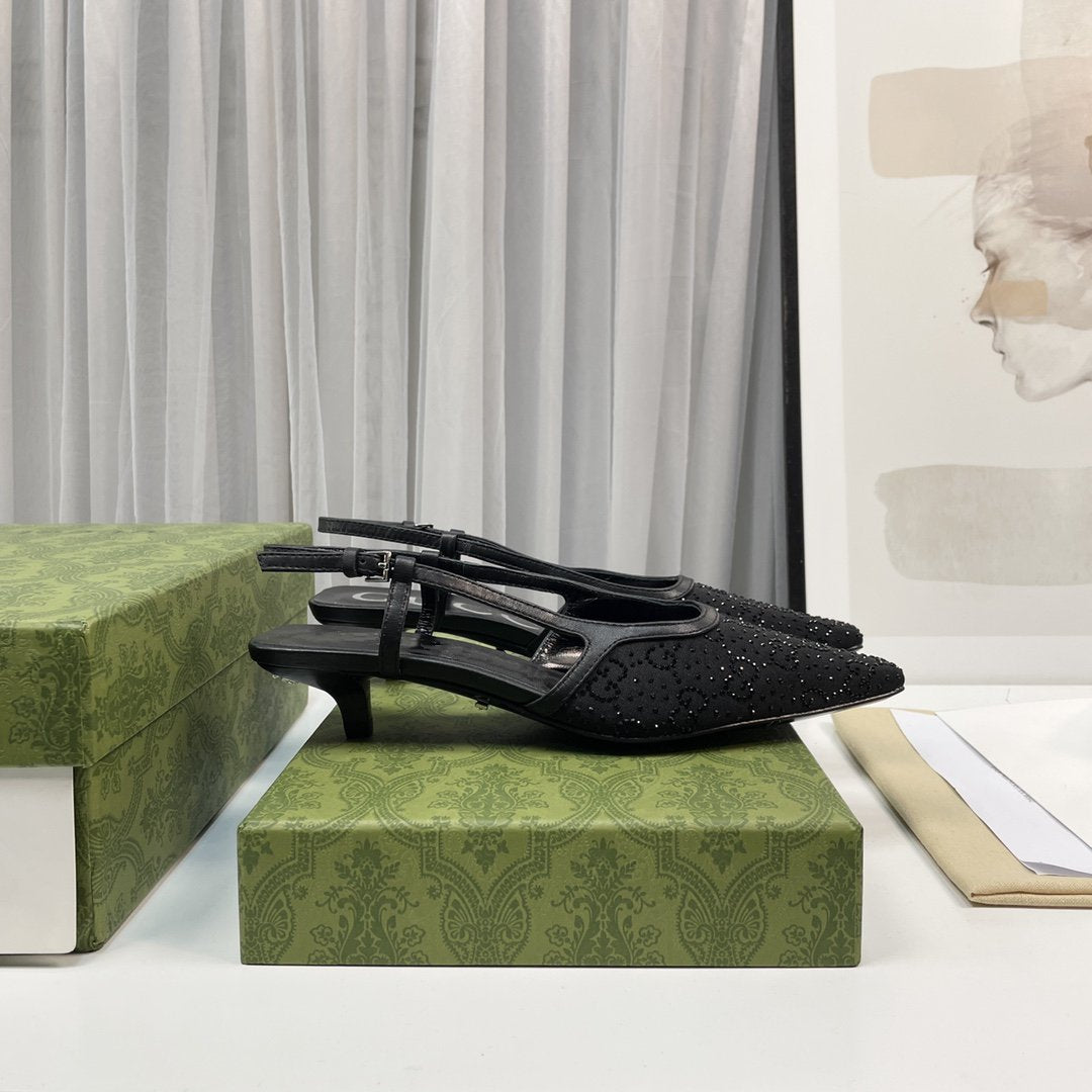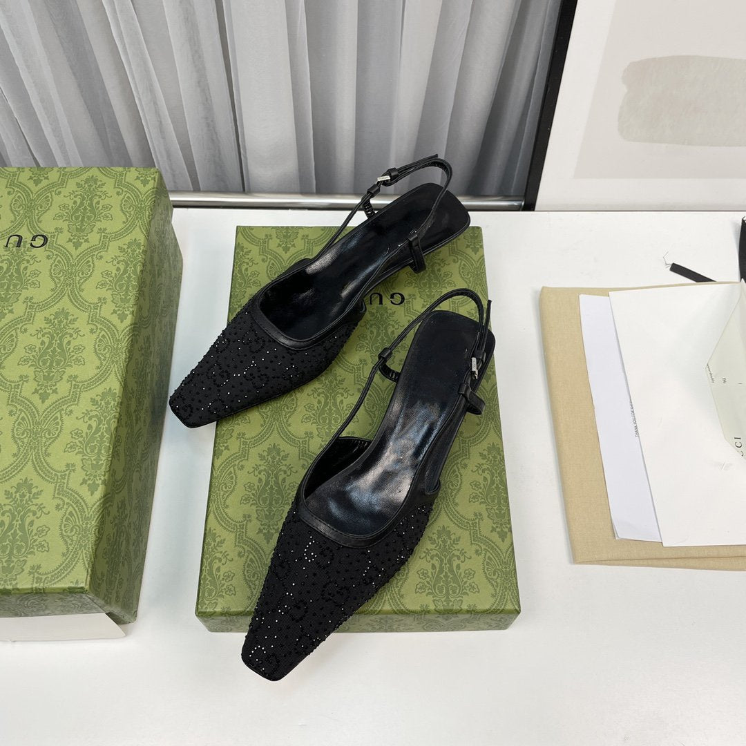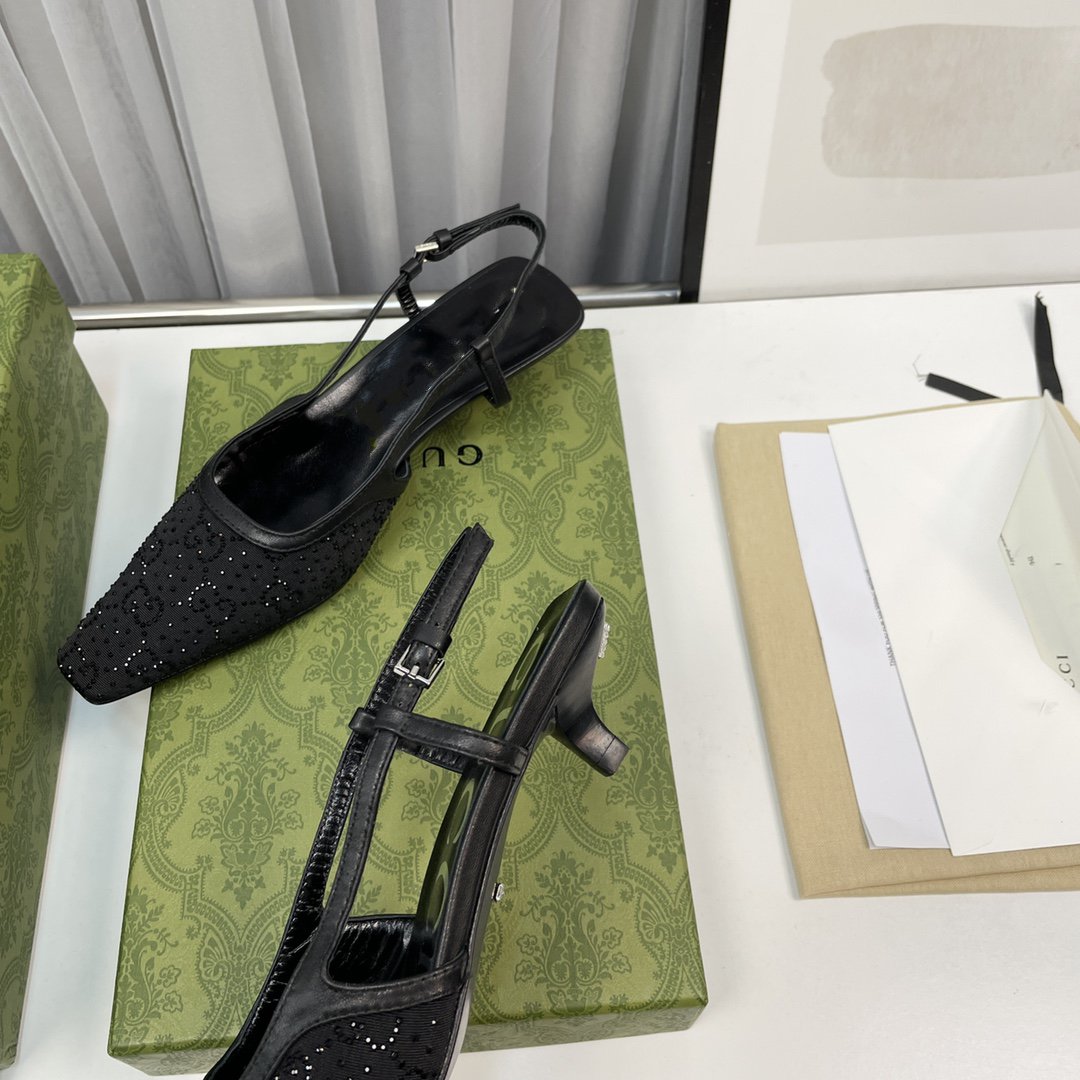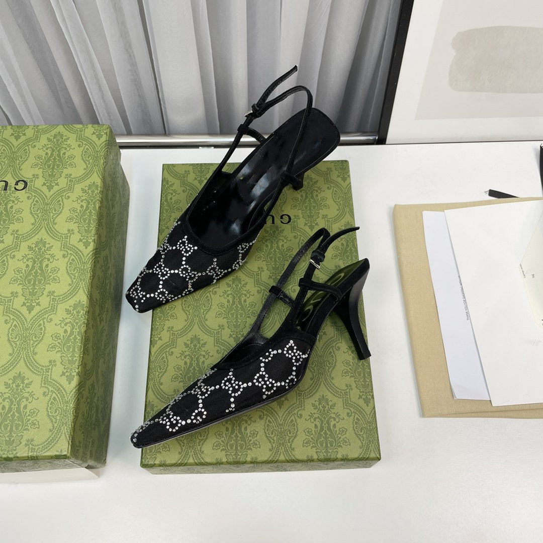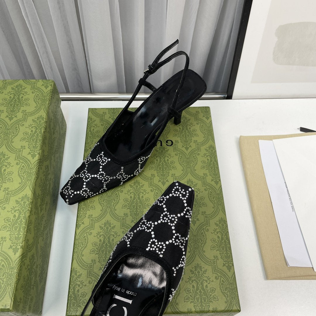 • High-end new embroidered classic G buckle high-heeled sandals.