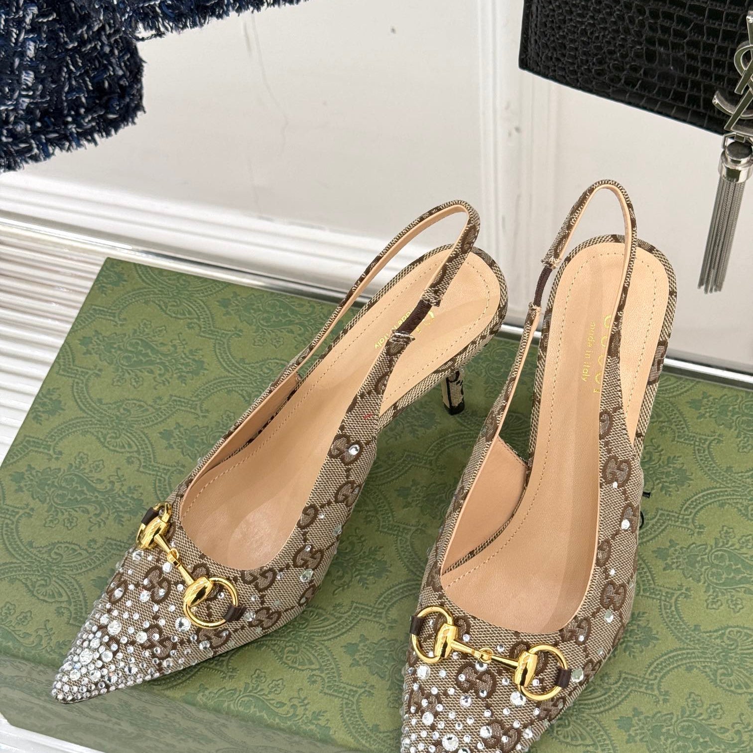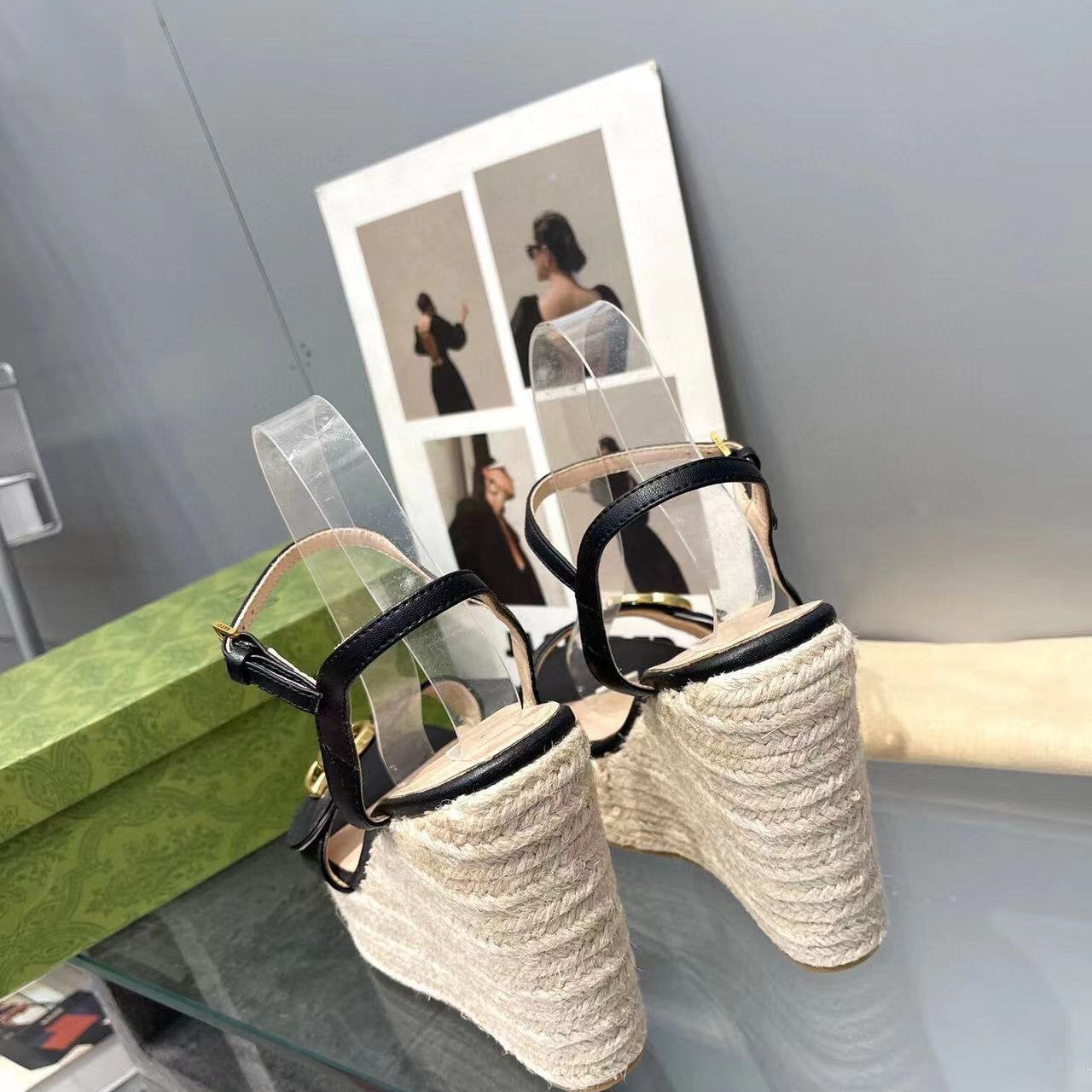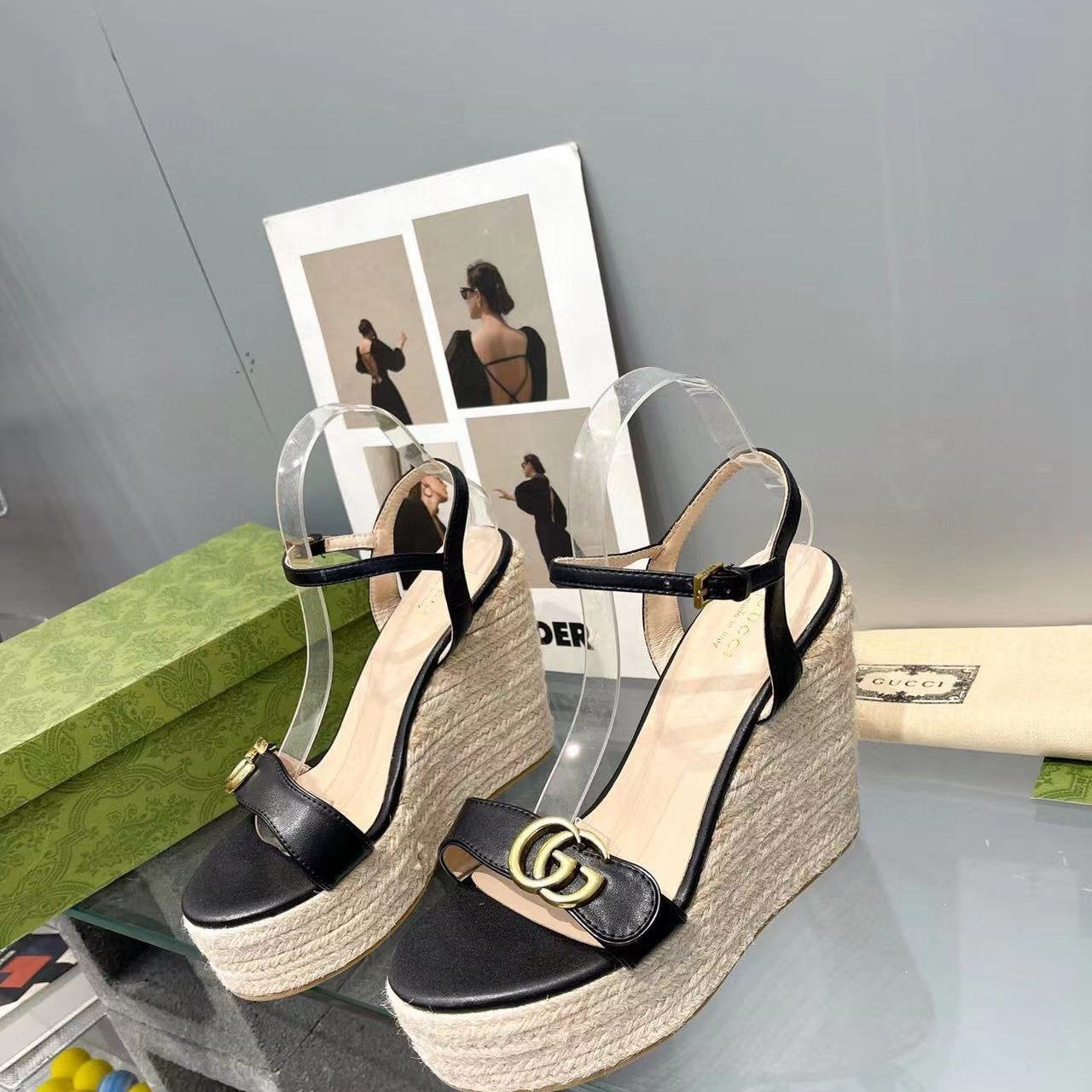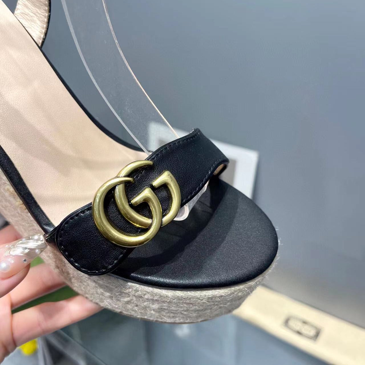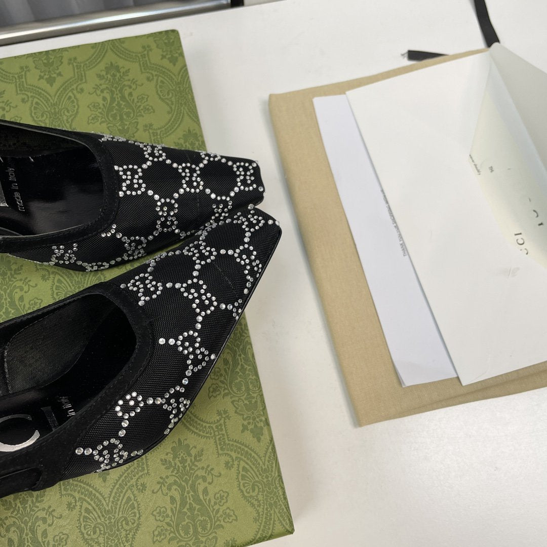 • High-end new embroidered classic G buckle high-heeled sandals.