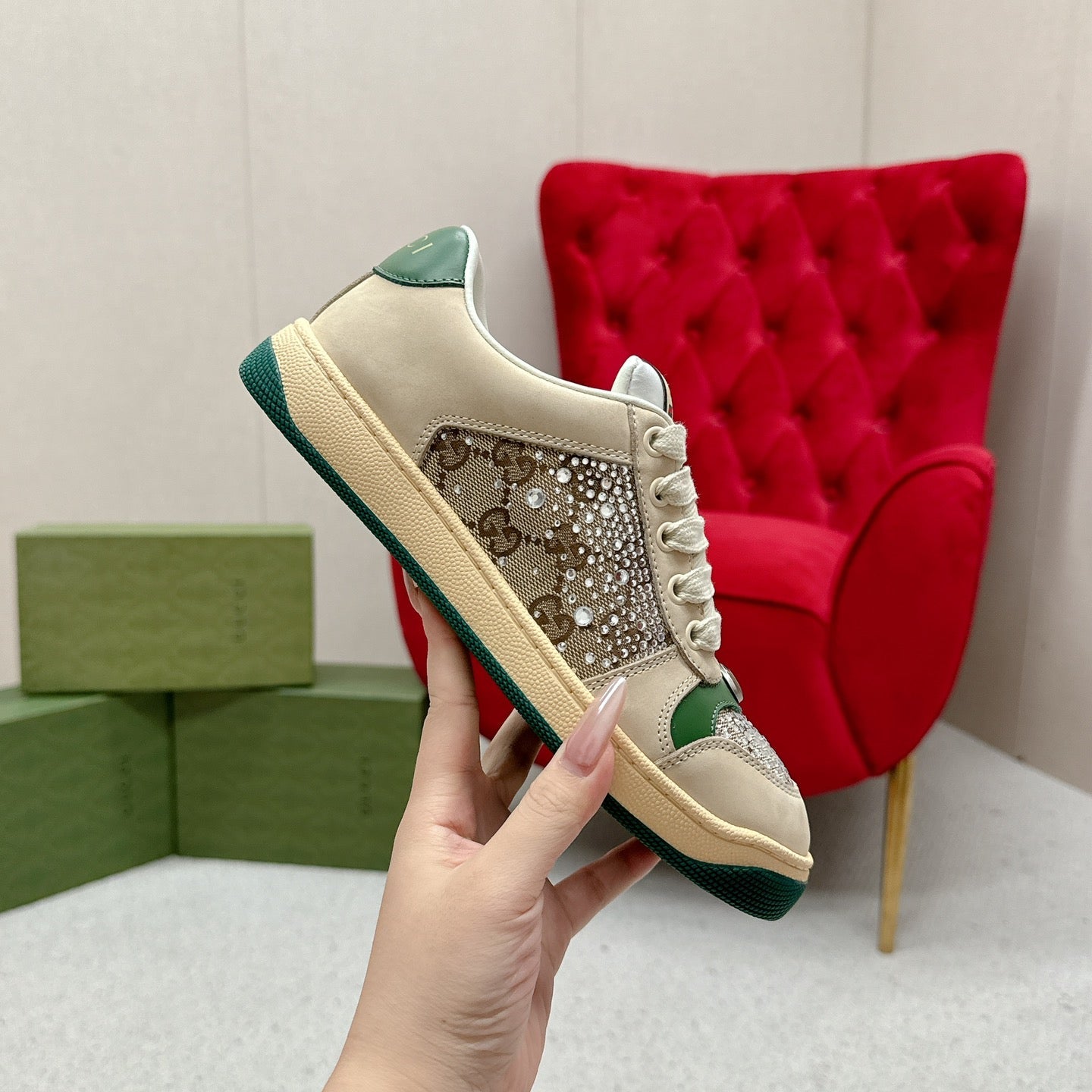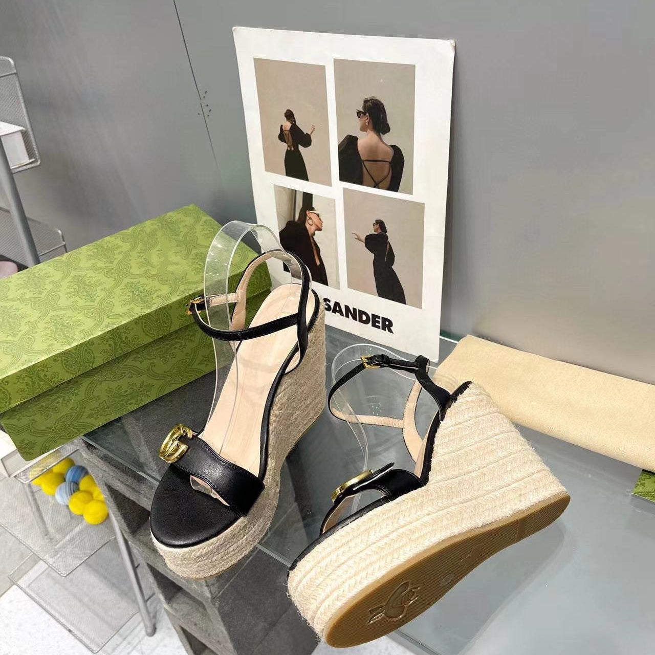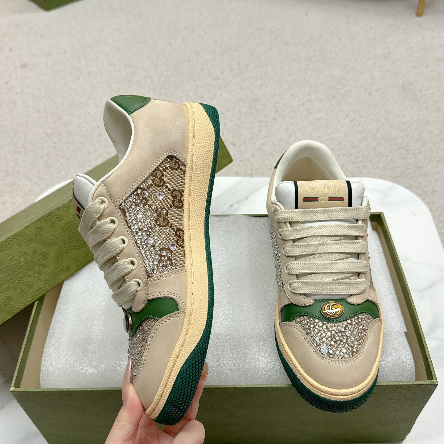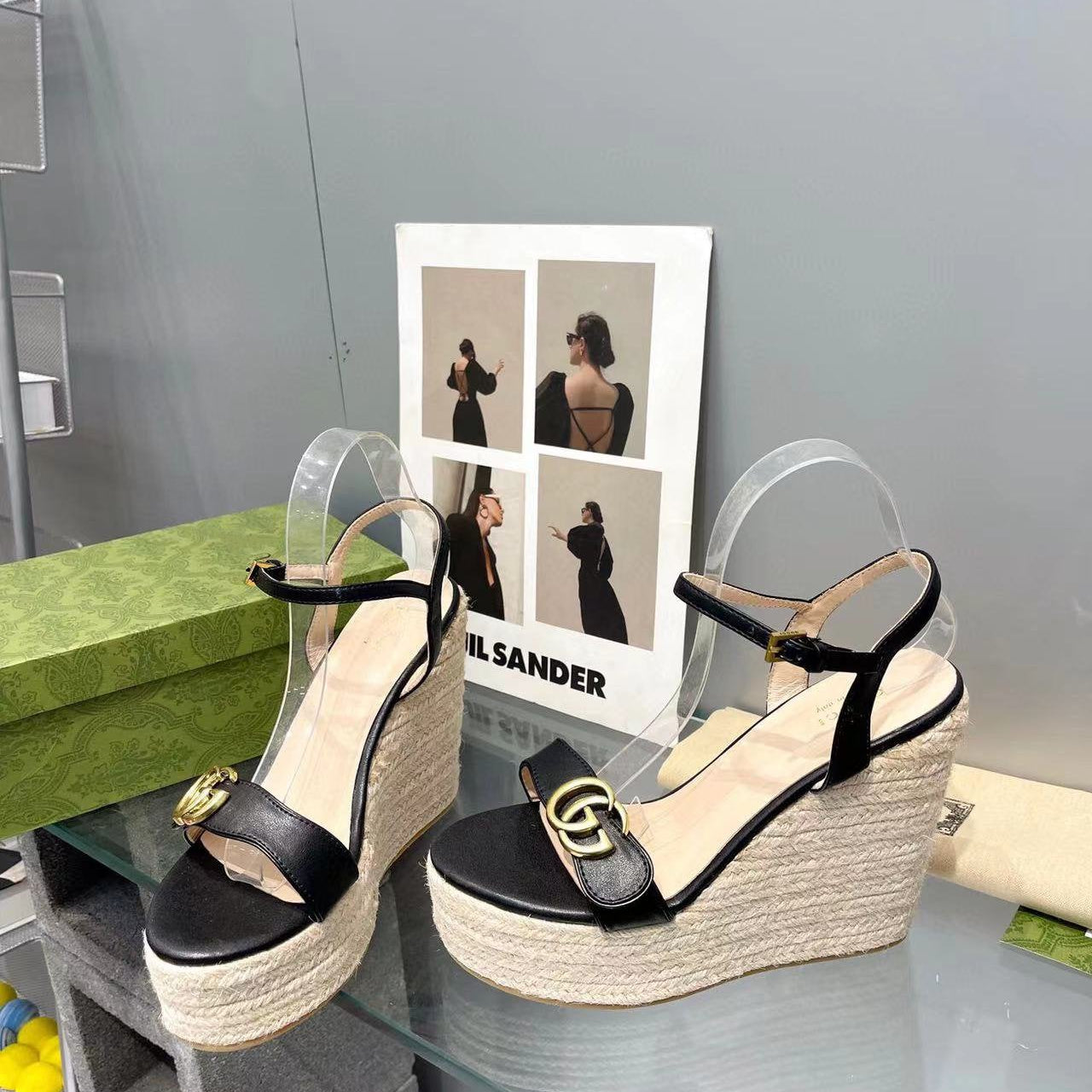GG SANDALS HIGH-HEELED GREEN