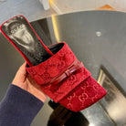 GG VELVET HIGH HEEL SANDALS WITH BEAUTIFUL LOGO DETAILS WINE RED