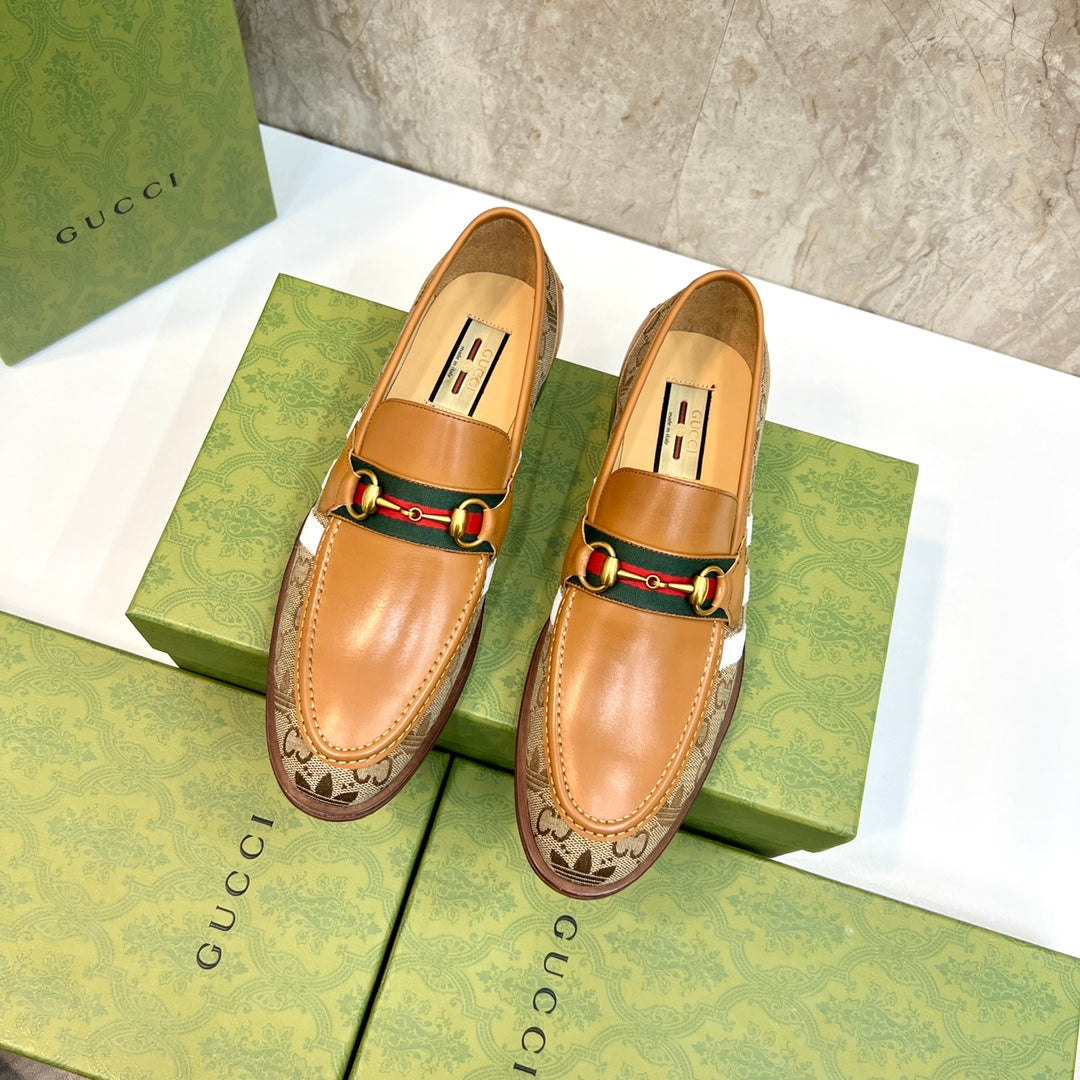 GG x Adidas Men's Loafer Light Brown Canvas Cowhide 724881
