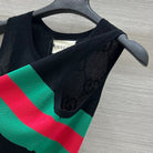 Gucci 25 Embroidered Jacquard Mesh Vest Top Black Tencel