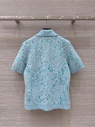 Gucci Knitted Polo Short-sleeved Top Blue Wool