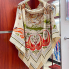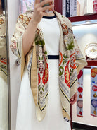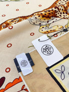 Guepards Bandana Double Face Scarf 140 CM In White Mix Beige Colorful Cashmere And Silk 334192