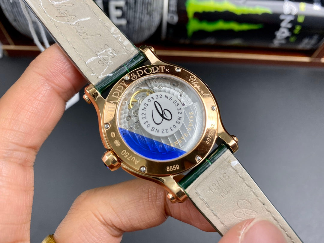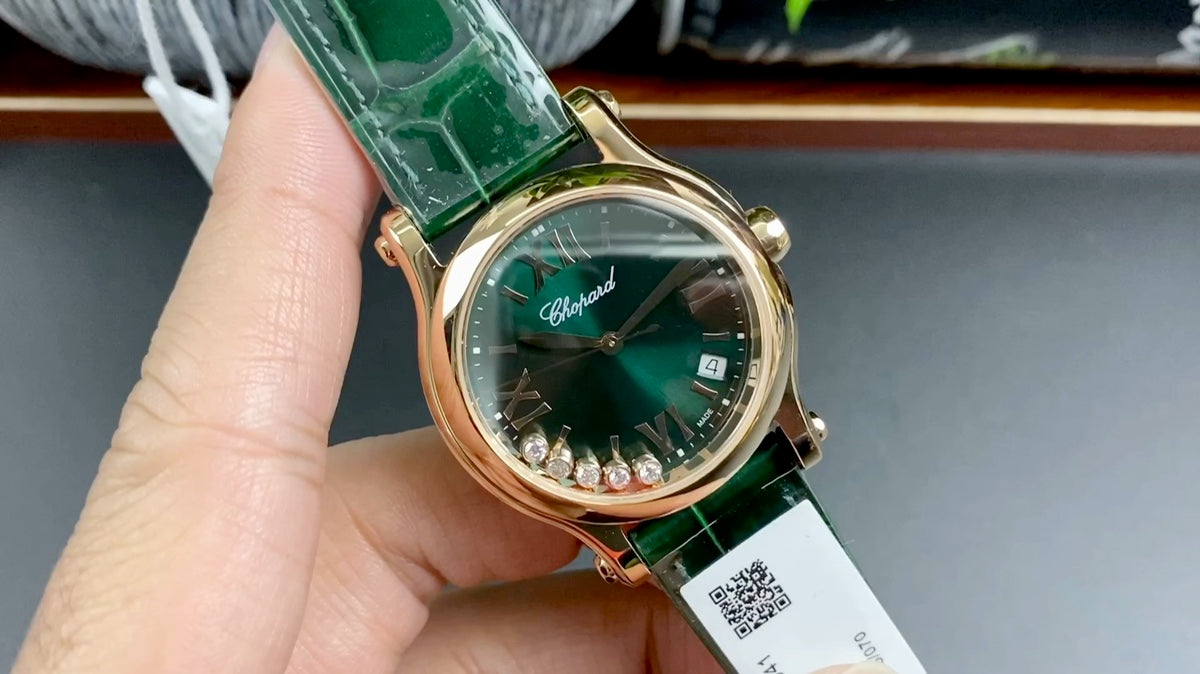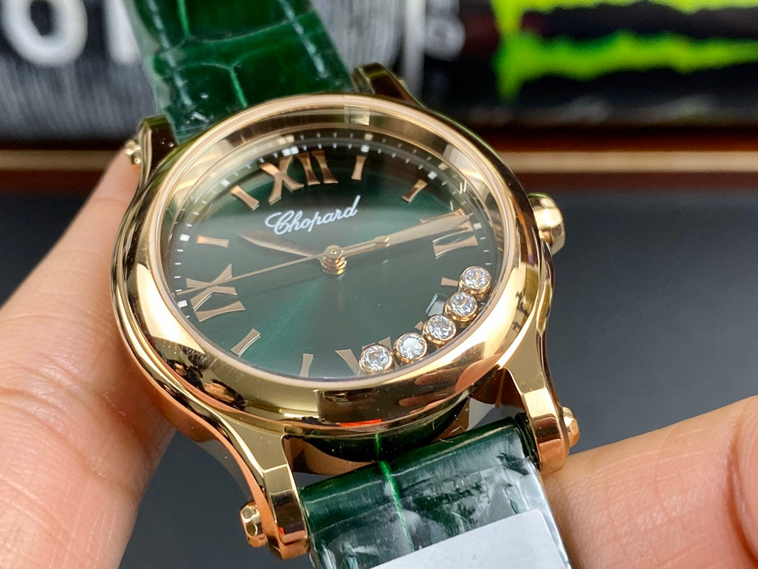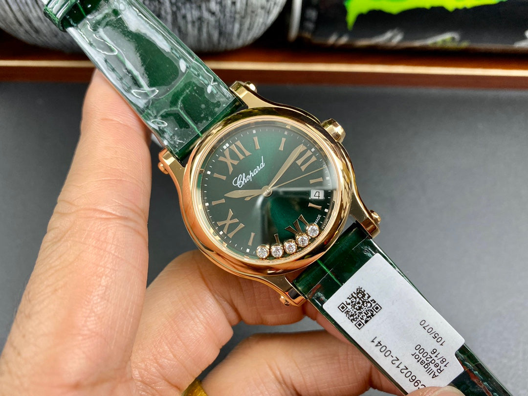 Happy Diamonds 36mm Gold Dark Green Dial