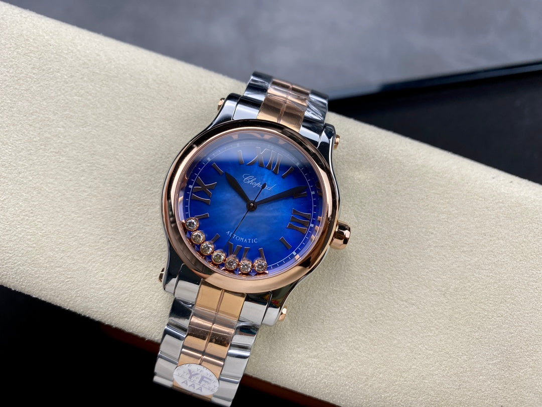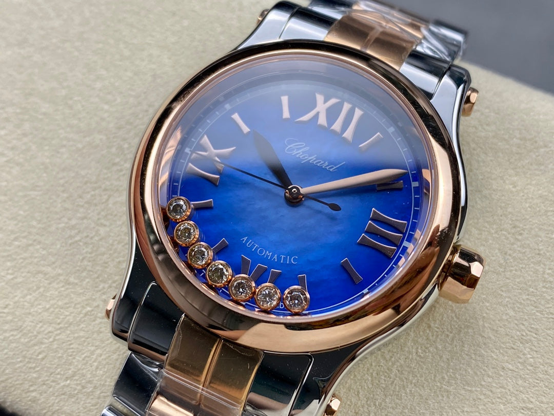 Happy Diamonds 36mm Pink Gold Deep Blue Dial