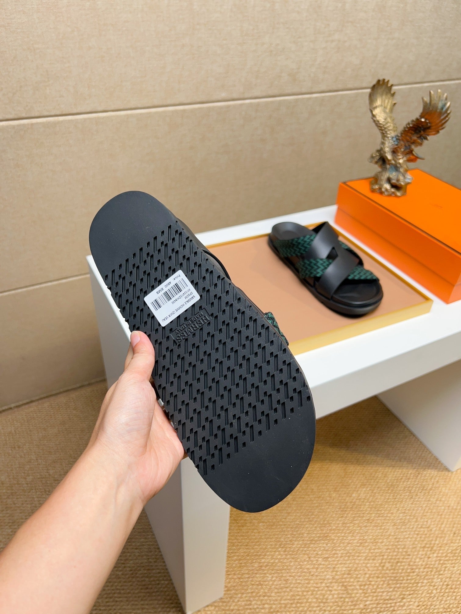 HM Men's Kazimir Sandals Black Green Calfskin 735742