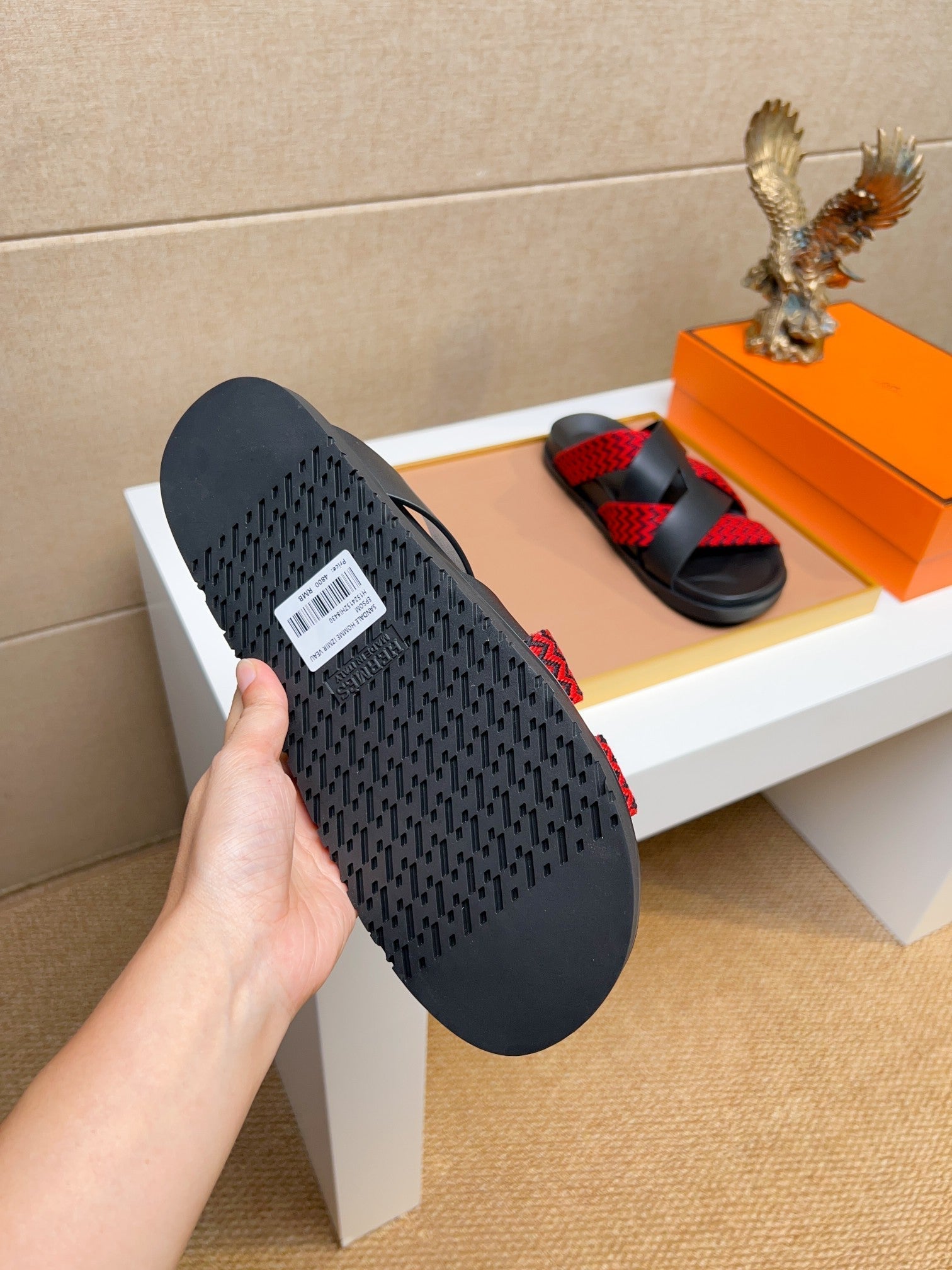 HM Men's Kazimir Sandals Black Red Calfskin 735748