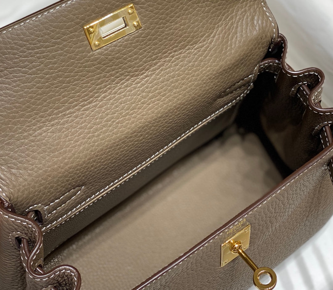 HM Mini Kelly 20cm Elephant Gray Togo Leather Gold Hardware