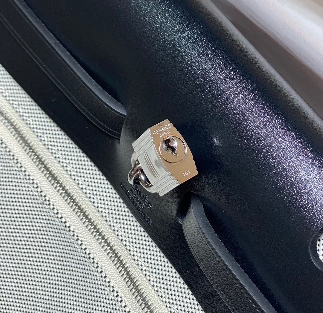 HM Pegase Pop Herbag Zip 31 White Black Canvas Black Cowhide Leather