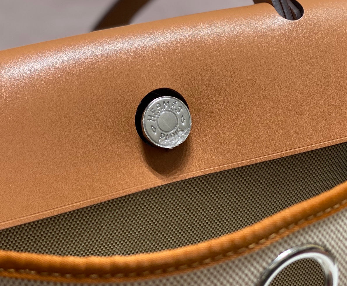 HM Pegase Pop Herbag Zip 31 White Blue Canvas Black Cowhide Leather