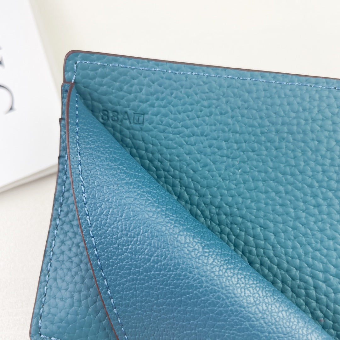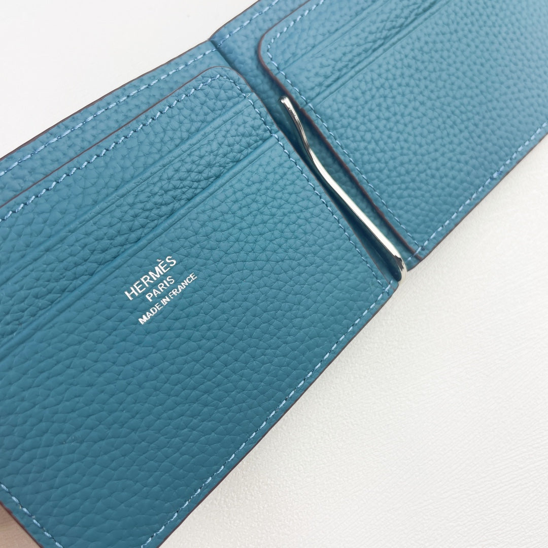 HM SILK’IN DOLLAR WALLET 11 CERULEAN GRAINED CALFSKIN