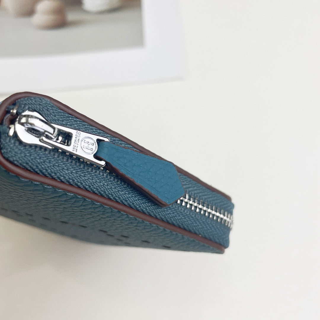 HM SILK'IN HOLED SHORT WALLET 11.5 CERULEAN GRAINED CALFSKIN