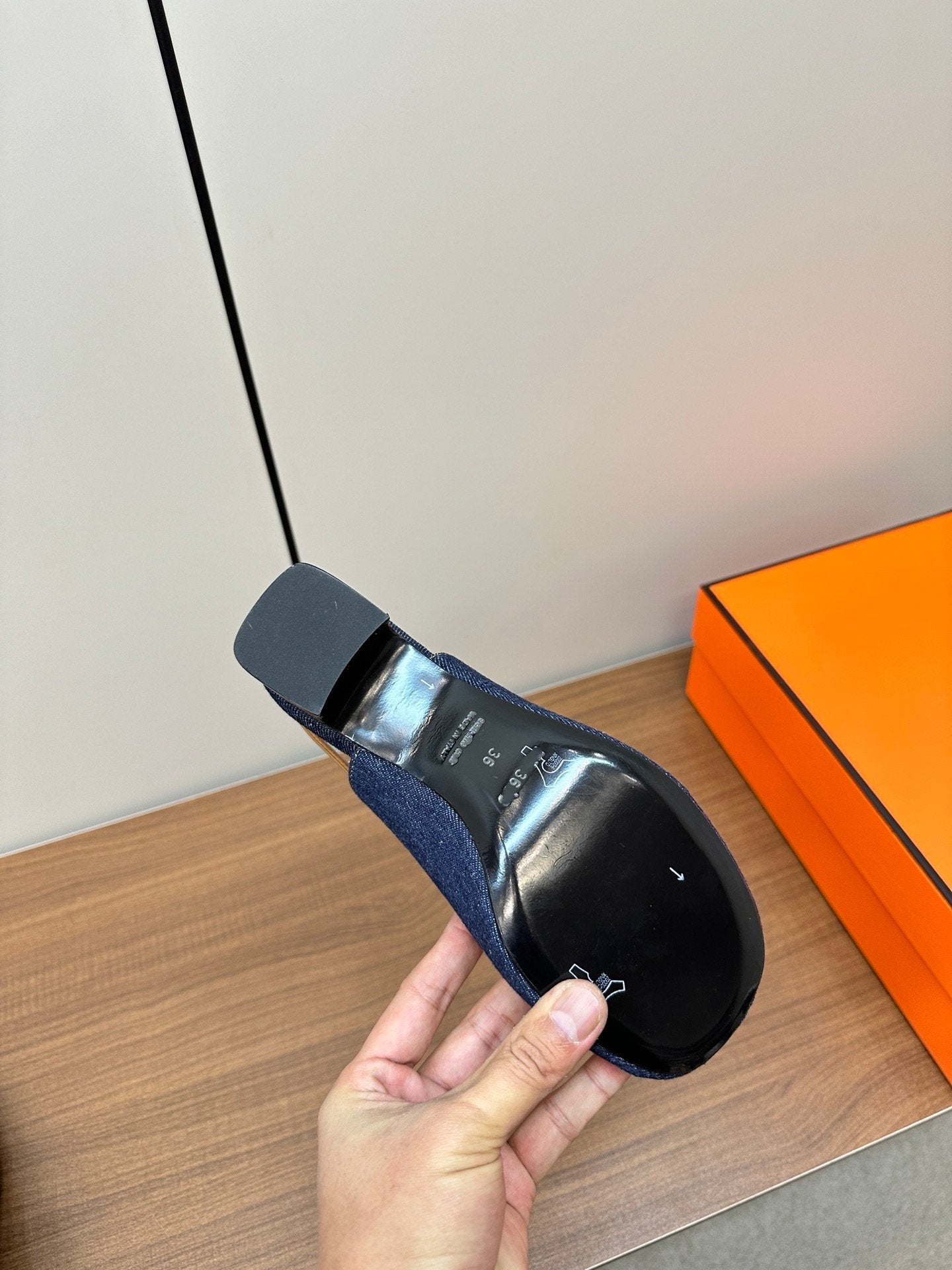 • Material: Pump in goatskin with strap