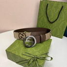 INTERLOCKING G BLACK SILVER BUCKLE 40MM BEIGE CANVAS