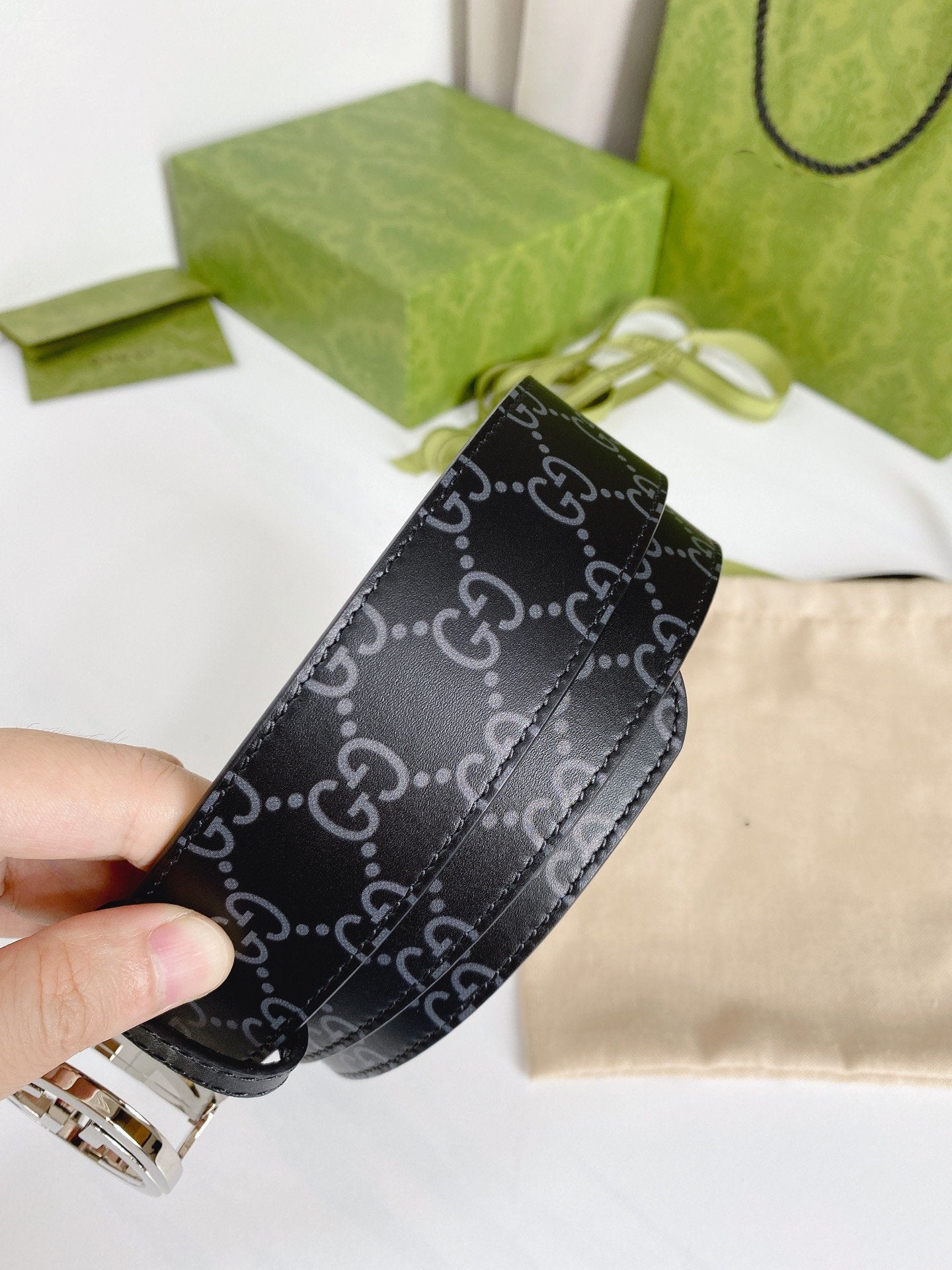 INTERLOCKING G SILVER BUCKLE 38MM BLACK LEAHTER MONOGRAM