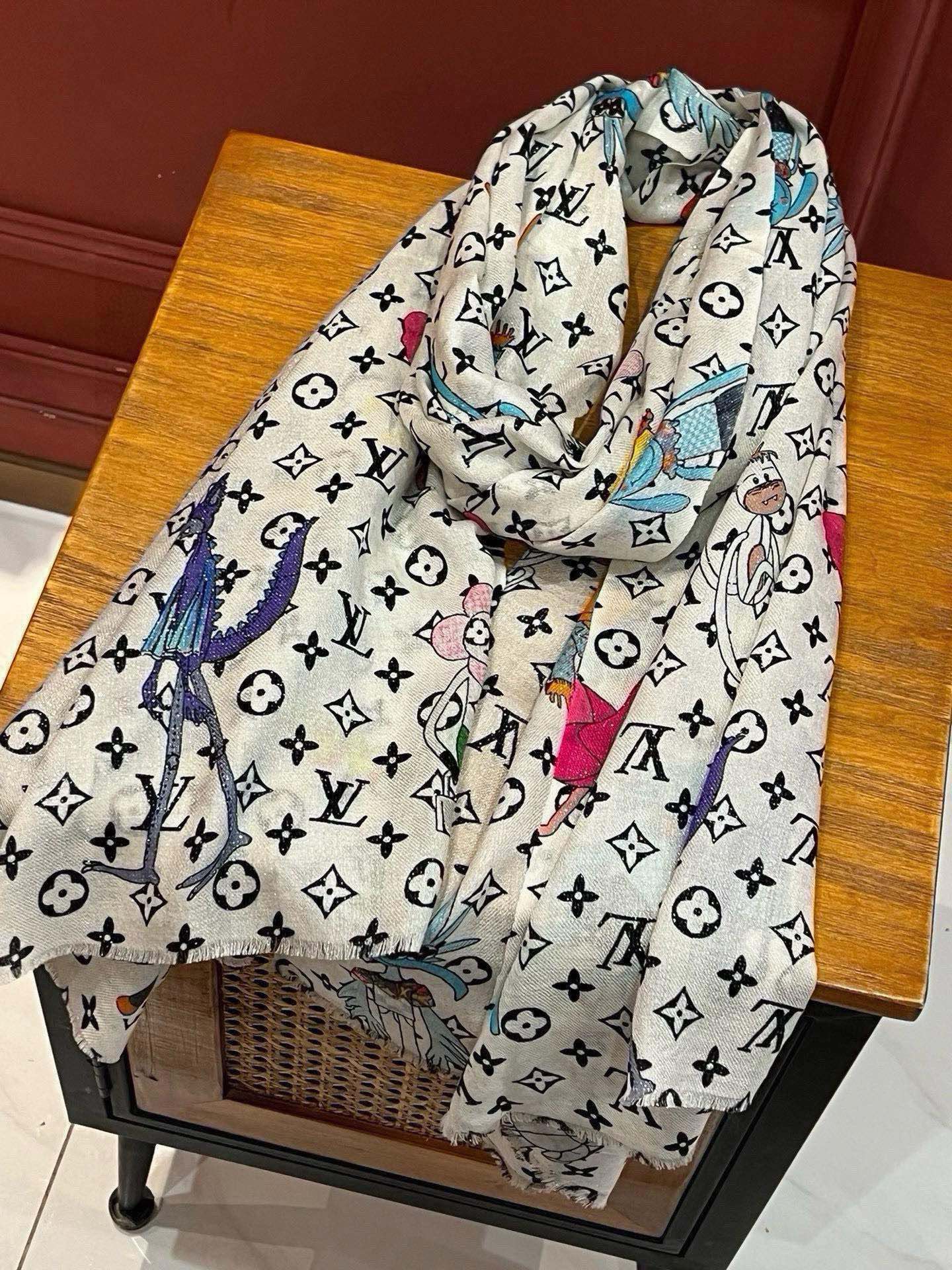 LONG SCARF 200 CM IN WHITE MONOGRAM CASHMERE 396506